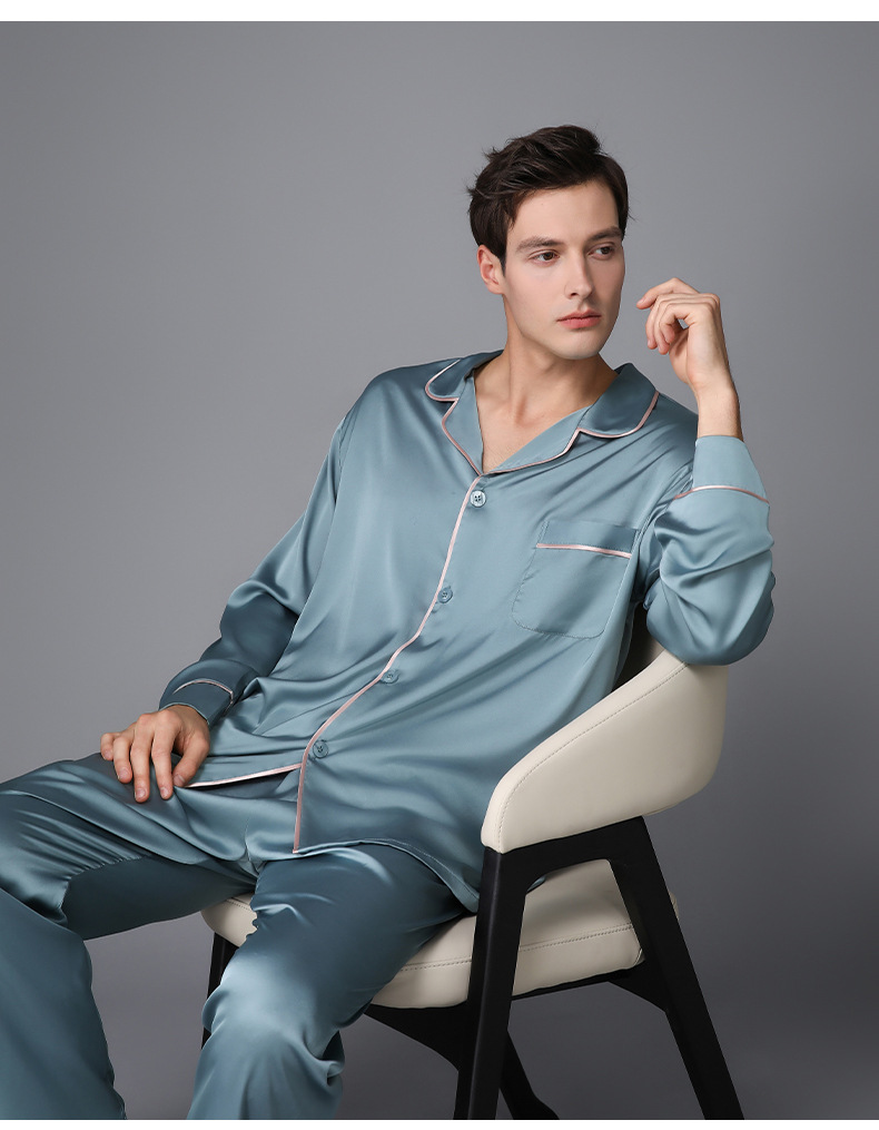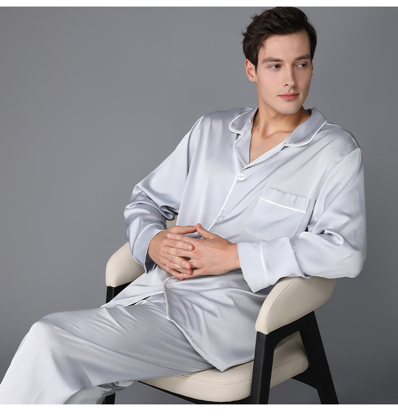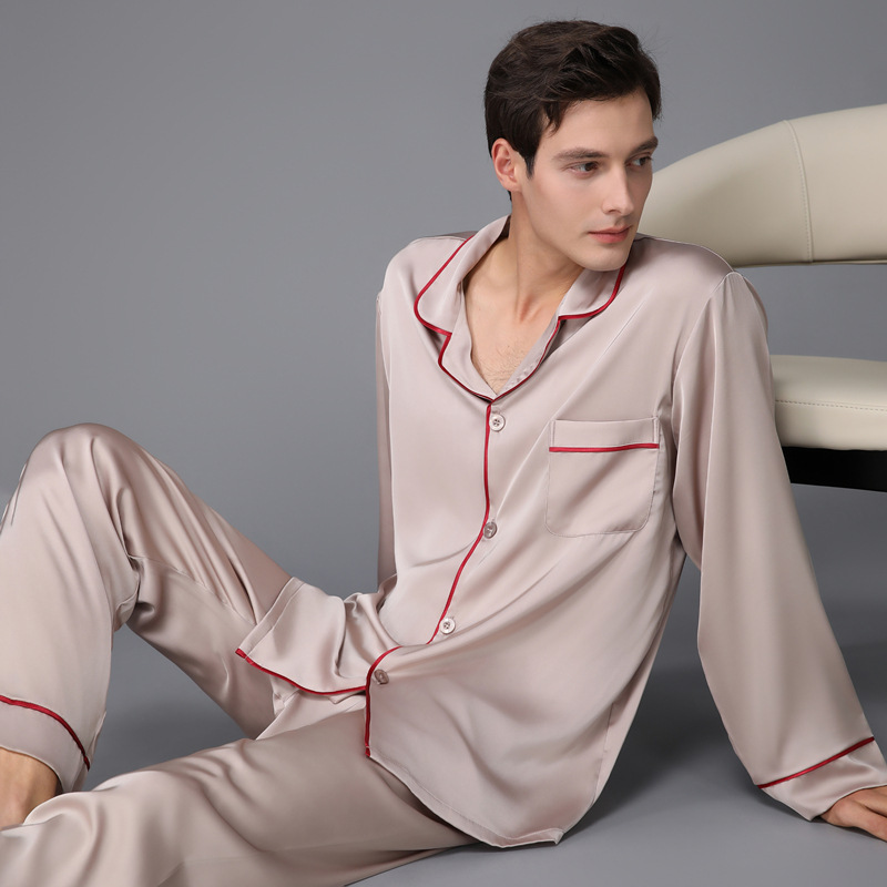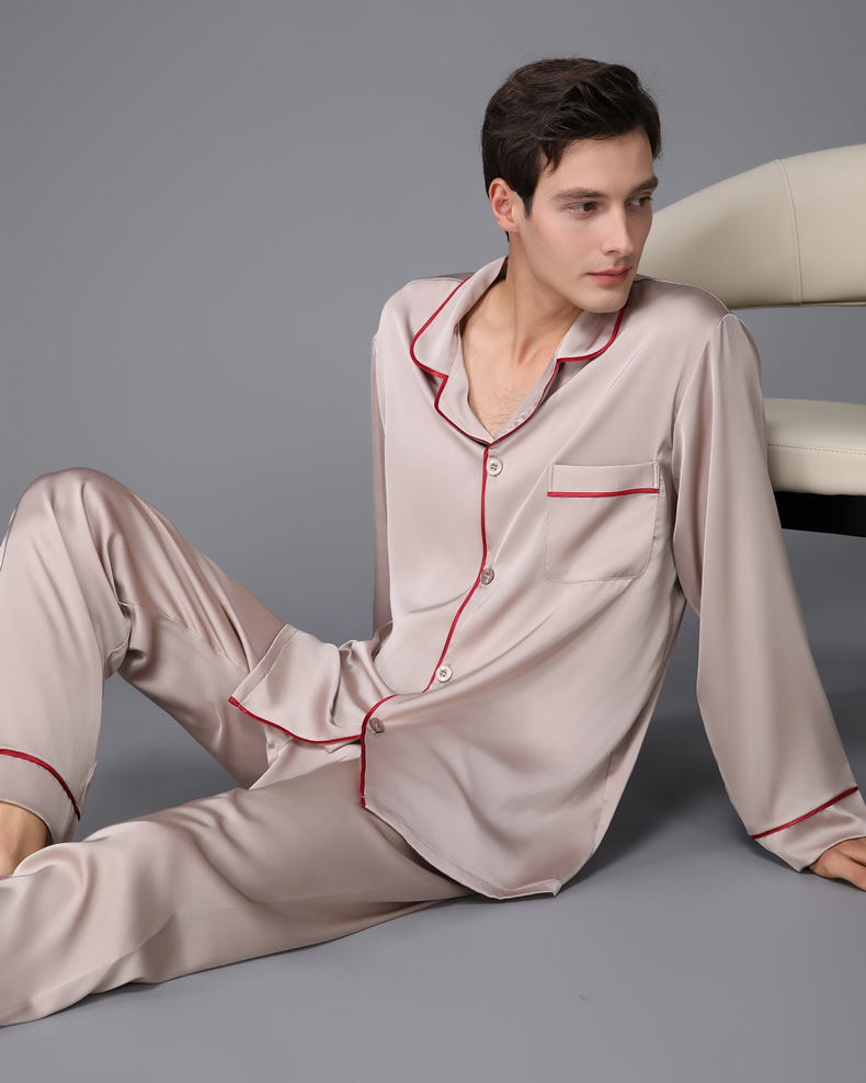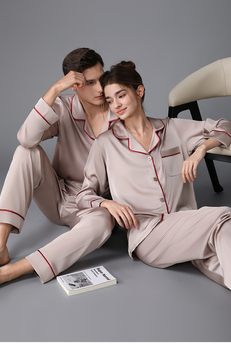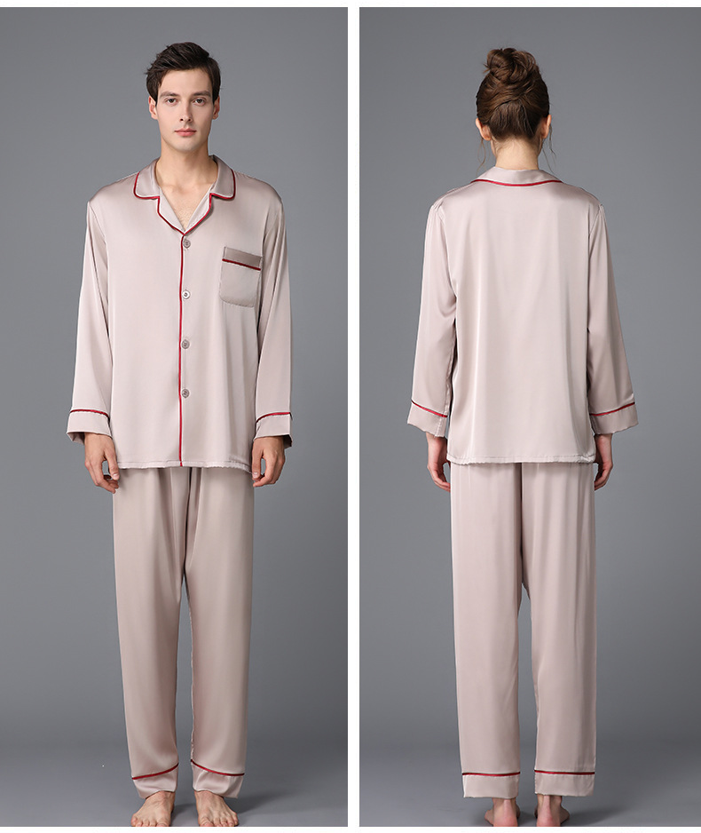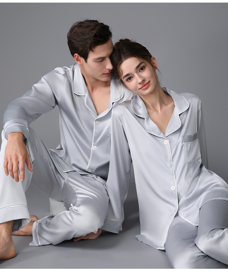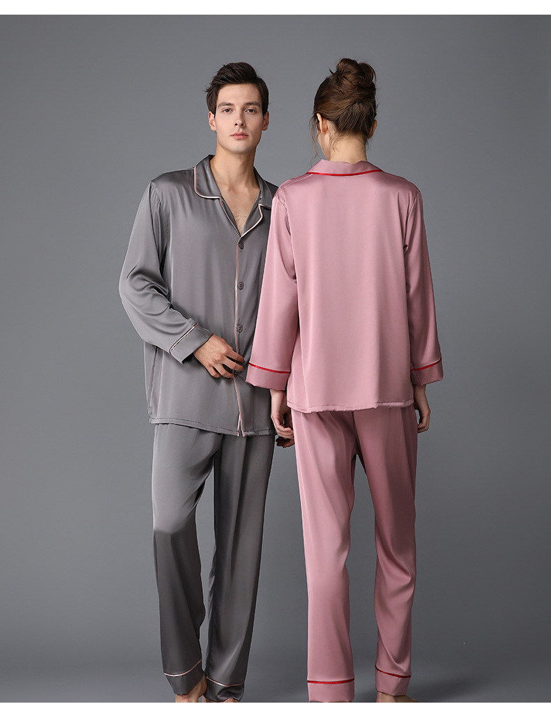 25년 새로운 커플 솔리드 컬러 하이 엔드 긴팔 바지 실크 잠옷 아이스 실크 남성 플러스 사이즈 여성 홈웨어