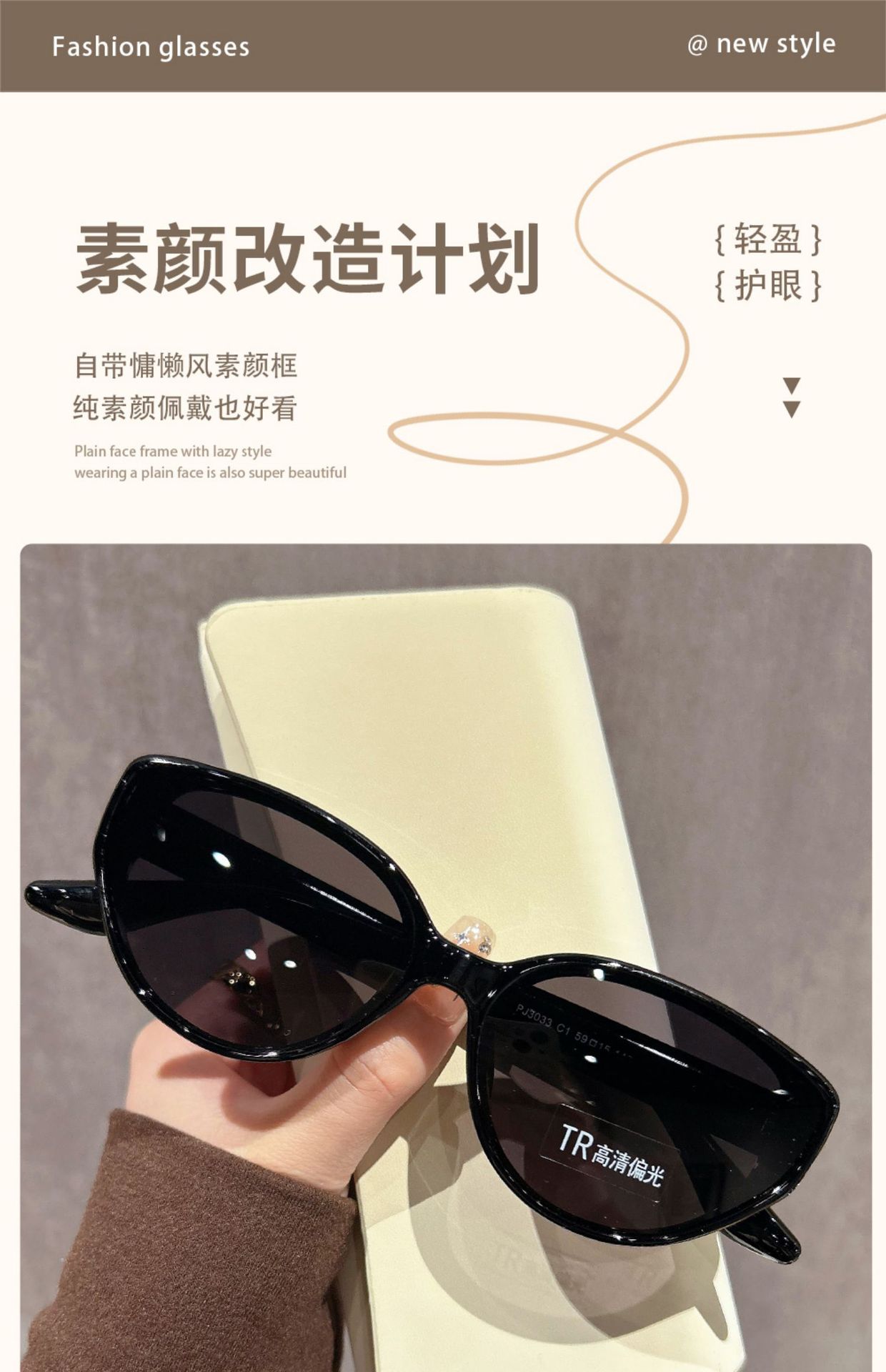 새로운 예술적 레트로 일본 고양이의 눈 TR 울트라 라이트 편광 선글라스 맞춤형 패션 틈새 게으른 선글라스 여성