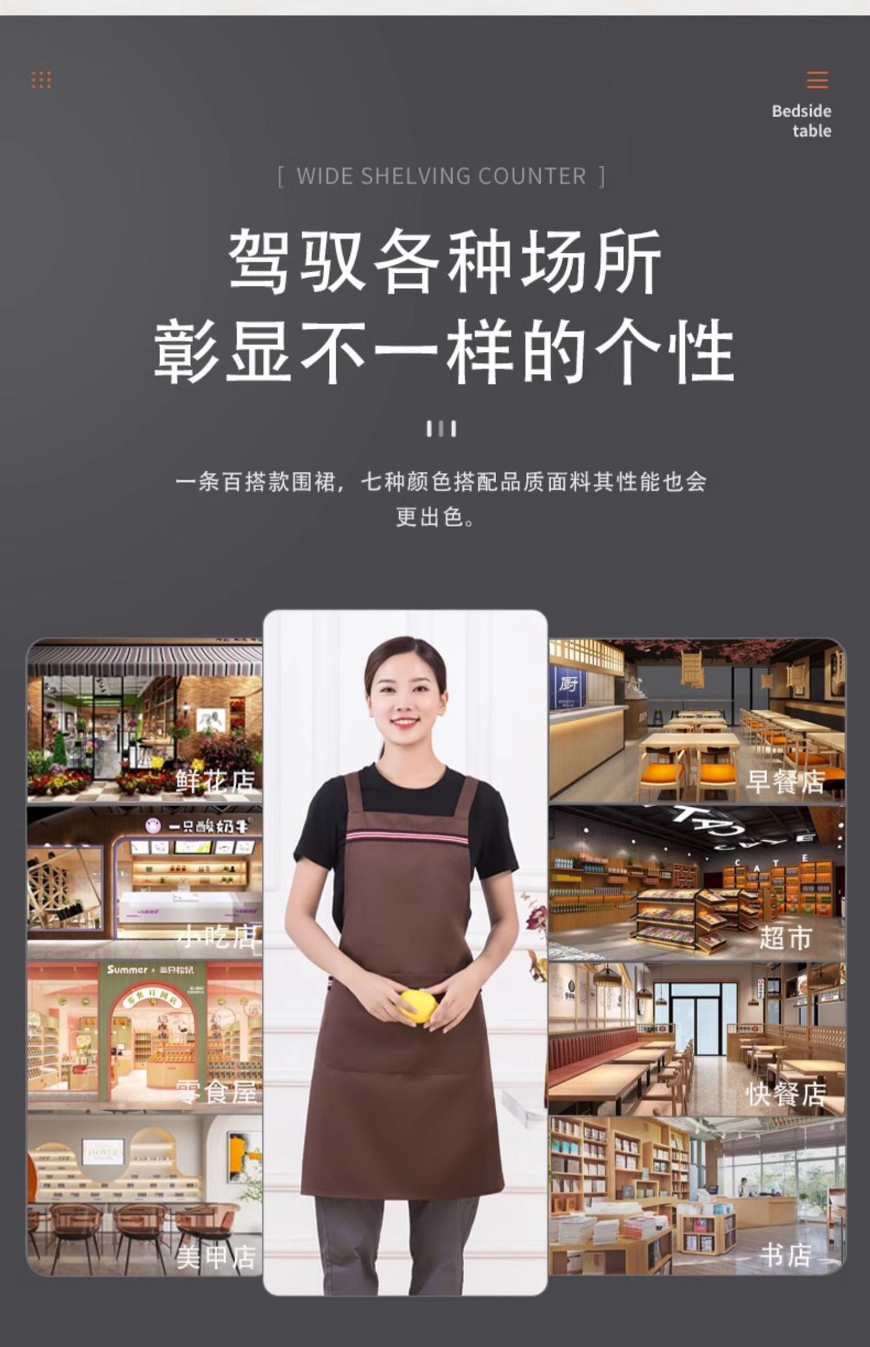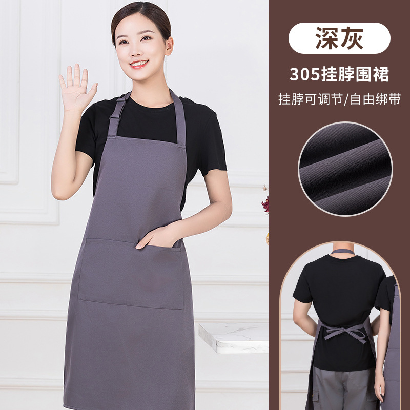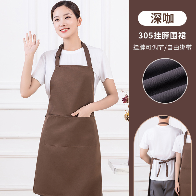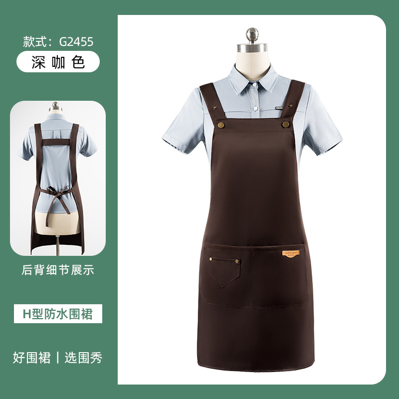 • [솔리드 컬러 어깨끈 방수] LS-G2455 어깨끈 조절 가능 앞치마 다크 브라운