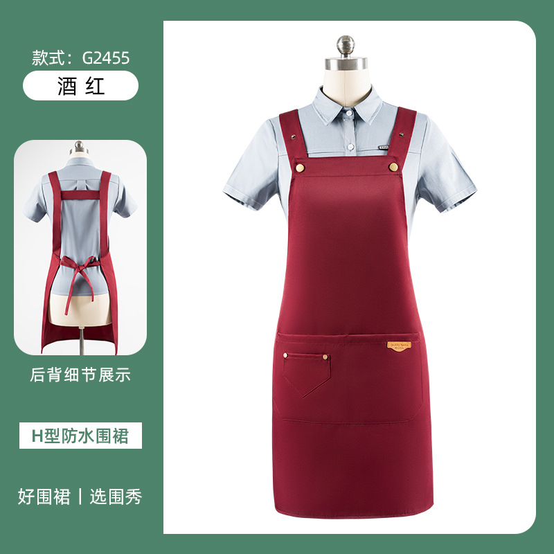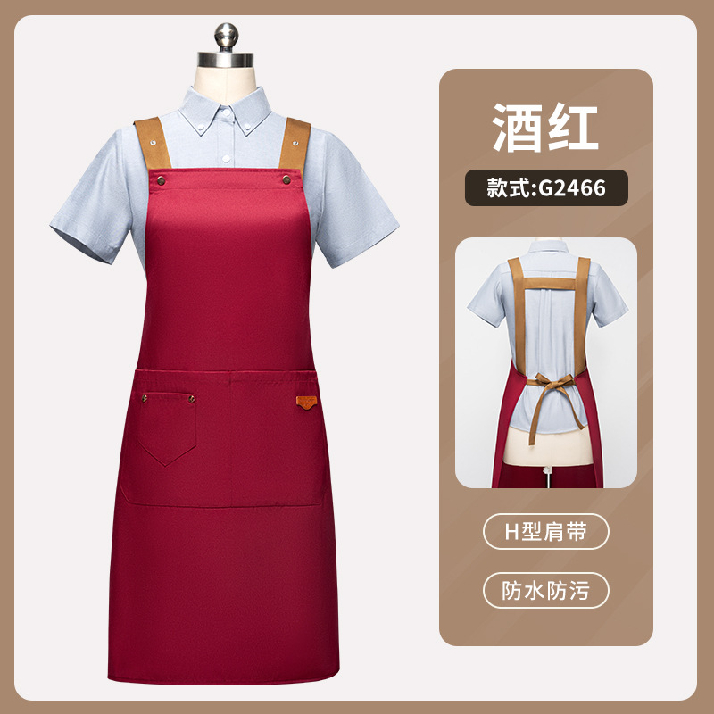 • [솔리드 컬러 어깨끈 방수] LS-G2455 어깨끈 조절 가능 앞치마 버건디