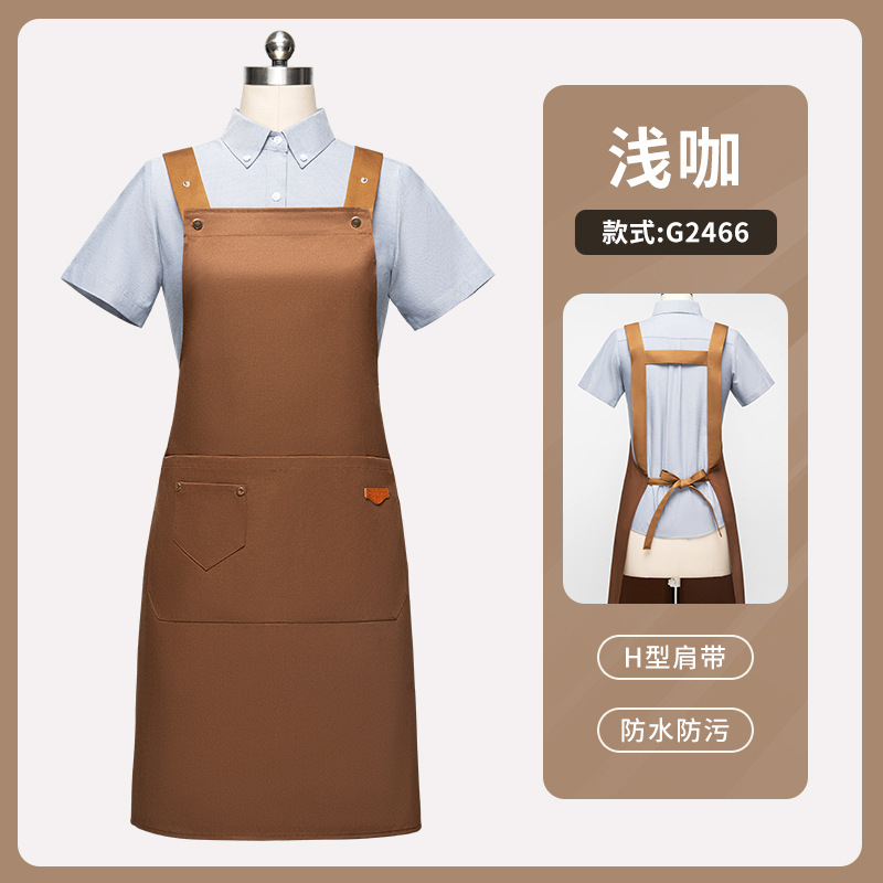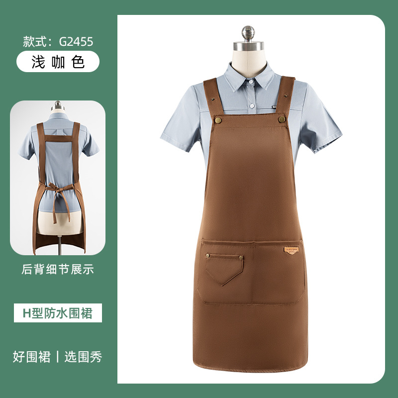 • [솔리드 컬러 어깨끈 방수] LS-G2455 어깨끈 조절 가능 앞치마 라이트 브라운
