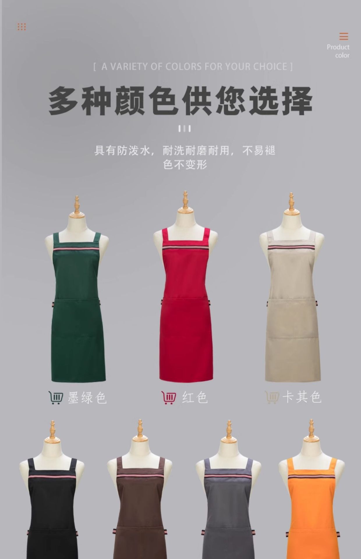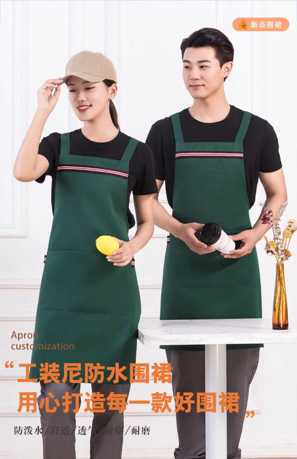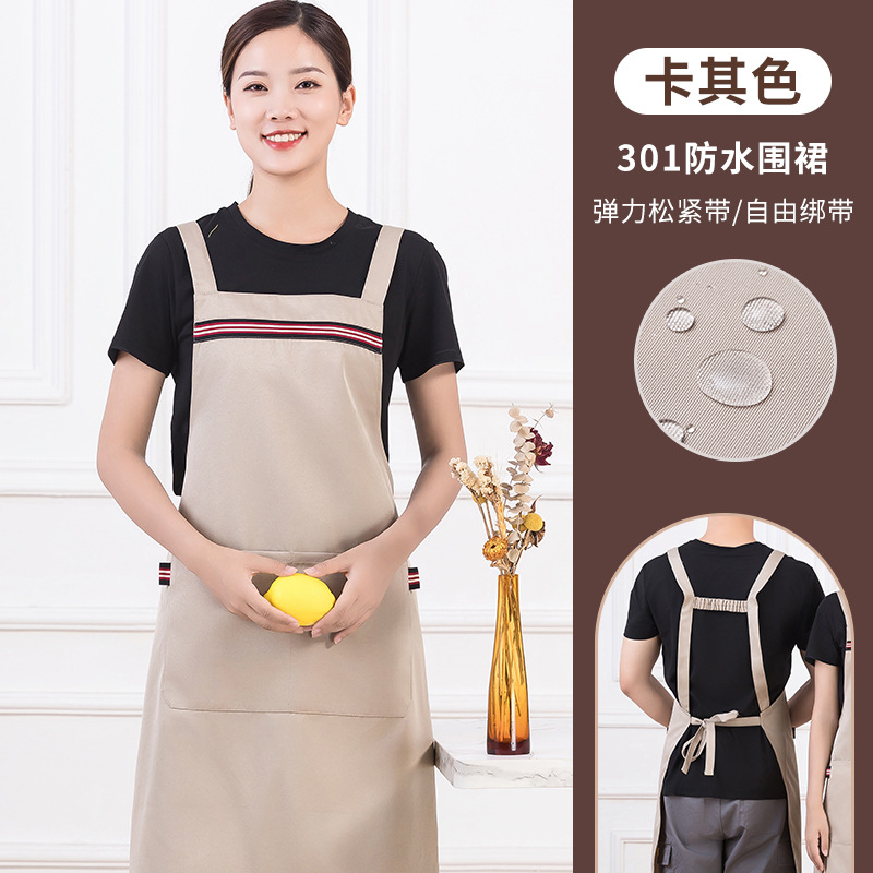 • [배색 어깨끈 방수] LS-G2466 조절 가능한 스트랩 앞치마 카키