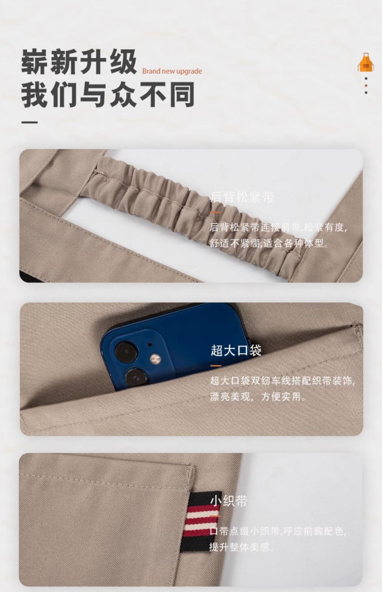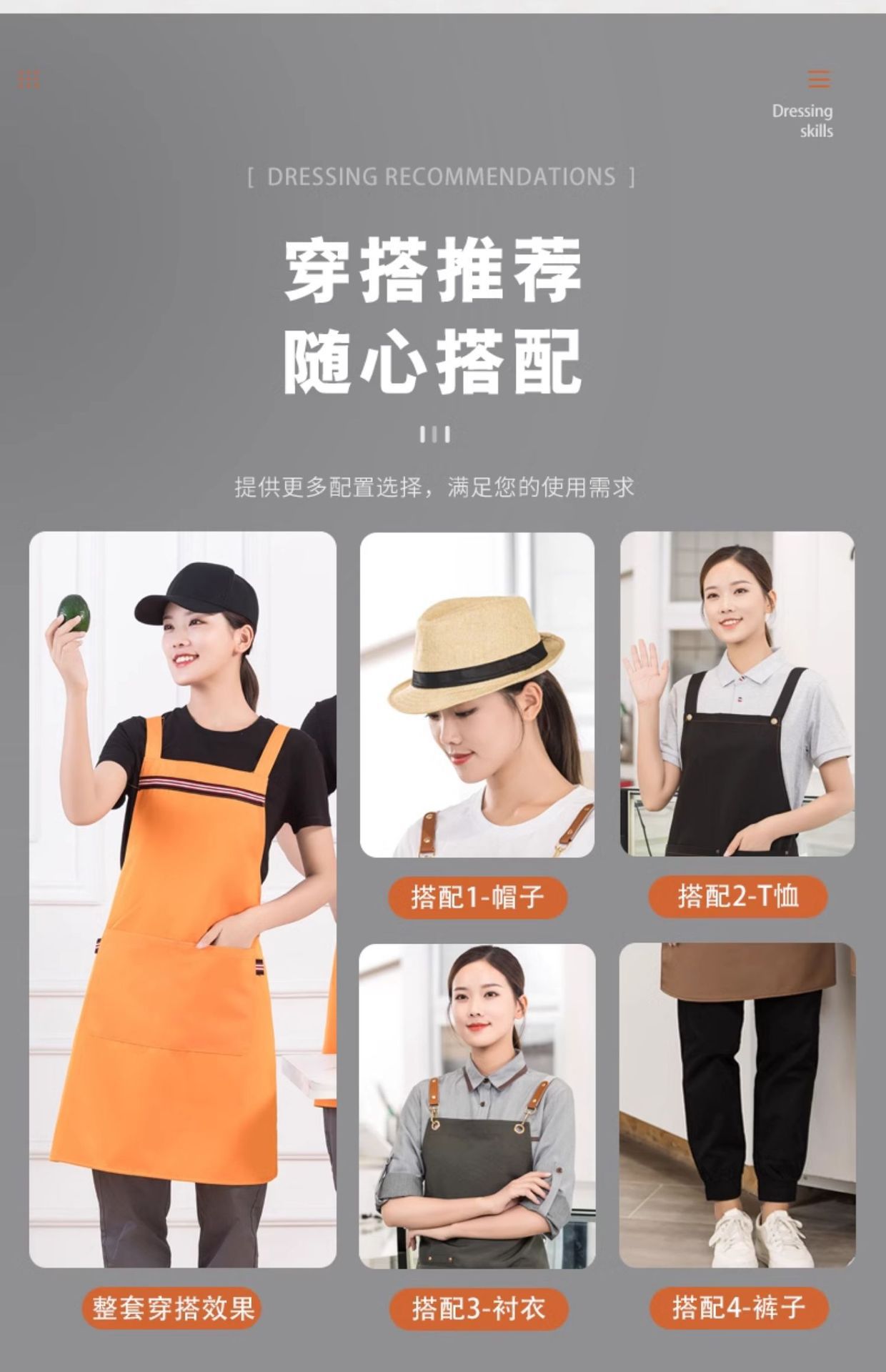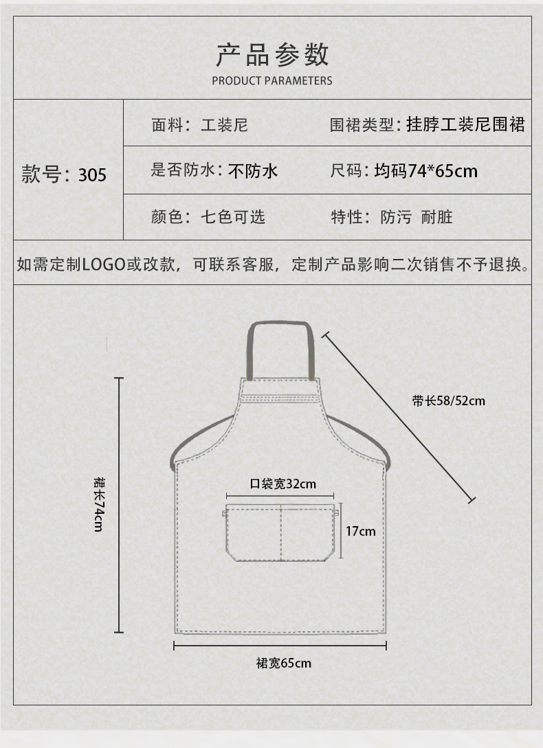 • [배색 어깨끈 방수] LS-G2466 조절 가능한 스트랩 앞치마 카키