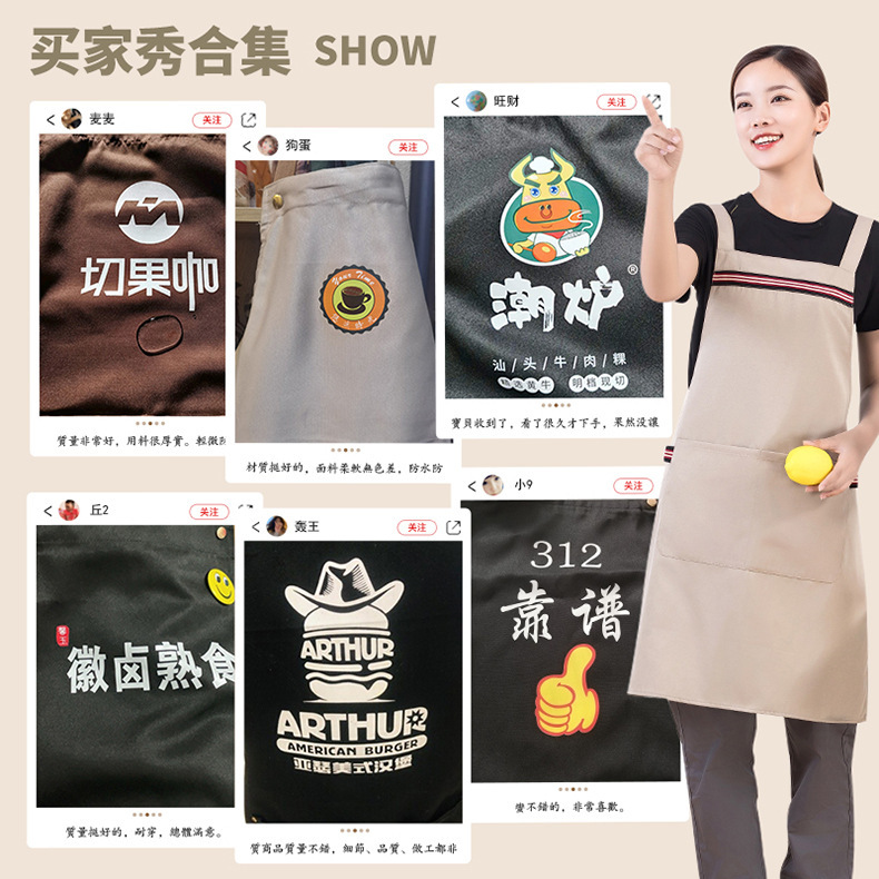 2024 새로운 방수 맞춤형 앞치마 로고 인쇄 케이터링 특수 주방 레스토랑 과일 슈퍼마켓 어깨 스트랩 작업복스토어 가기