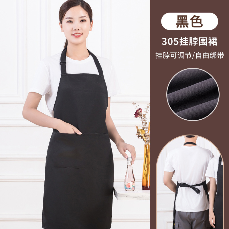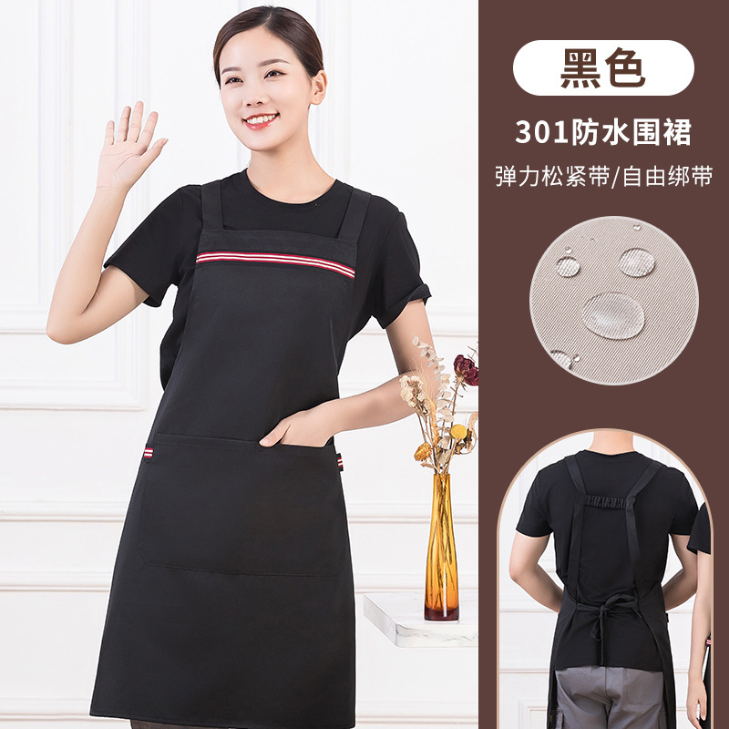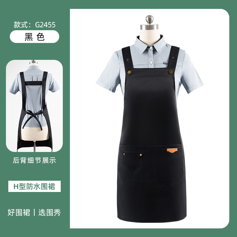 • [솔리드 컬러 어깨끈 방수] LS-G2455 어깨끈 조절 가능 앞치마 블랙
