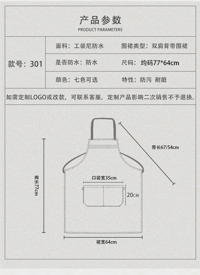 • YL-301 작업복 방수 앞치마 카키