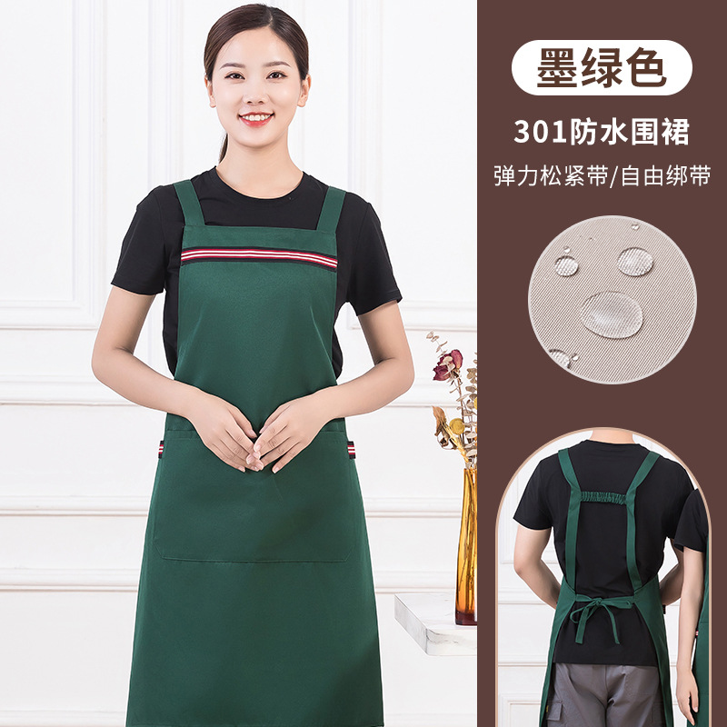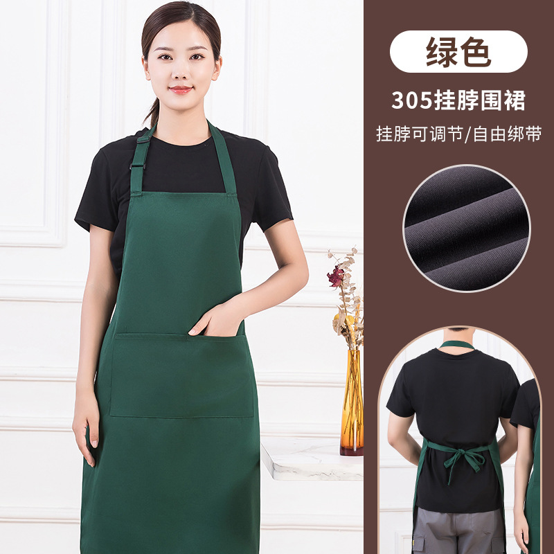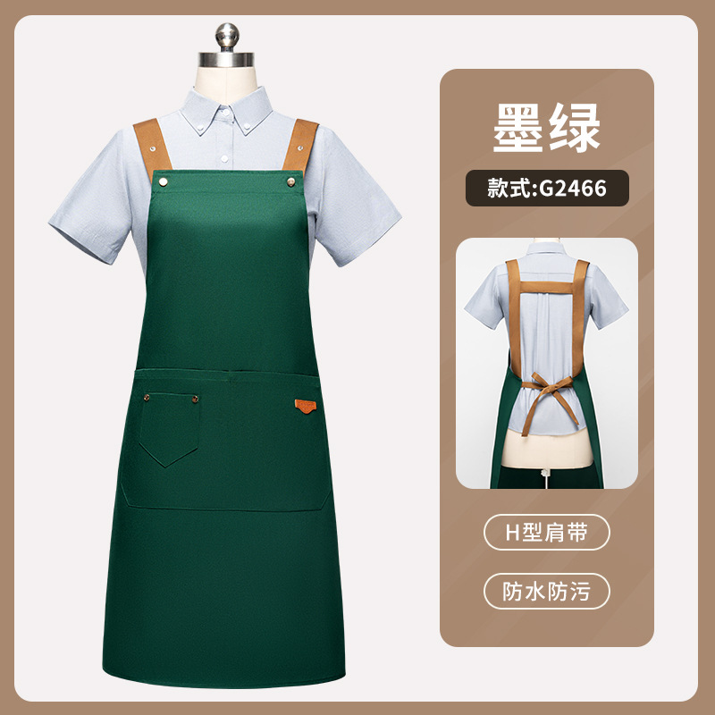 • [솔리드 컬러 어깨끈 방수] LS-G2455 어깨끈 조절 가능 앞치마 다크그린
