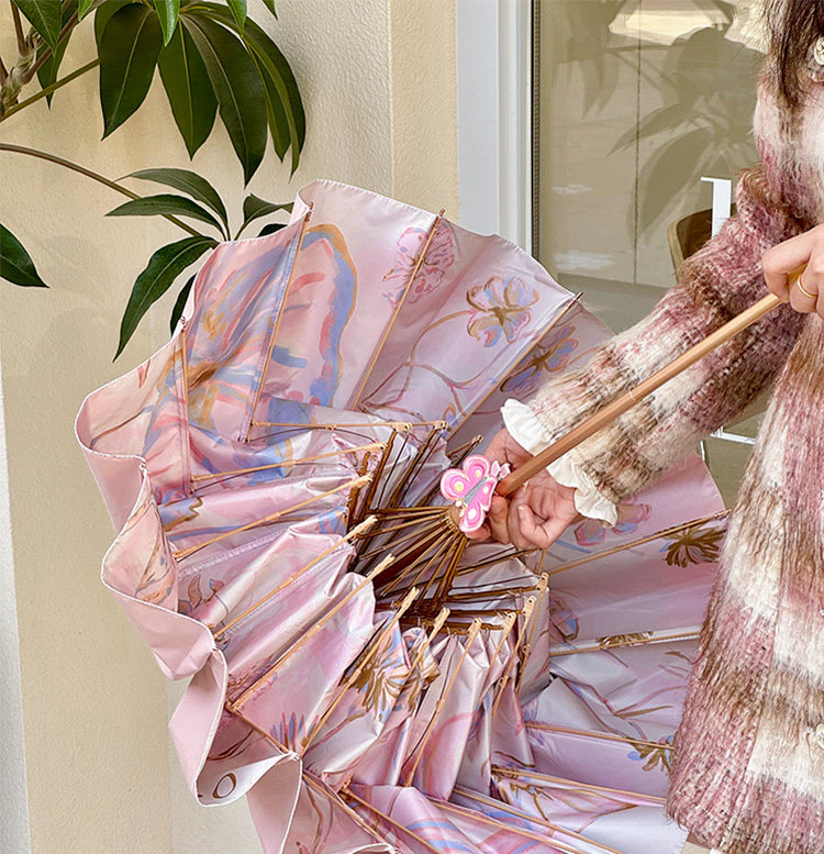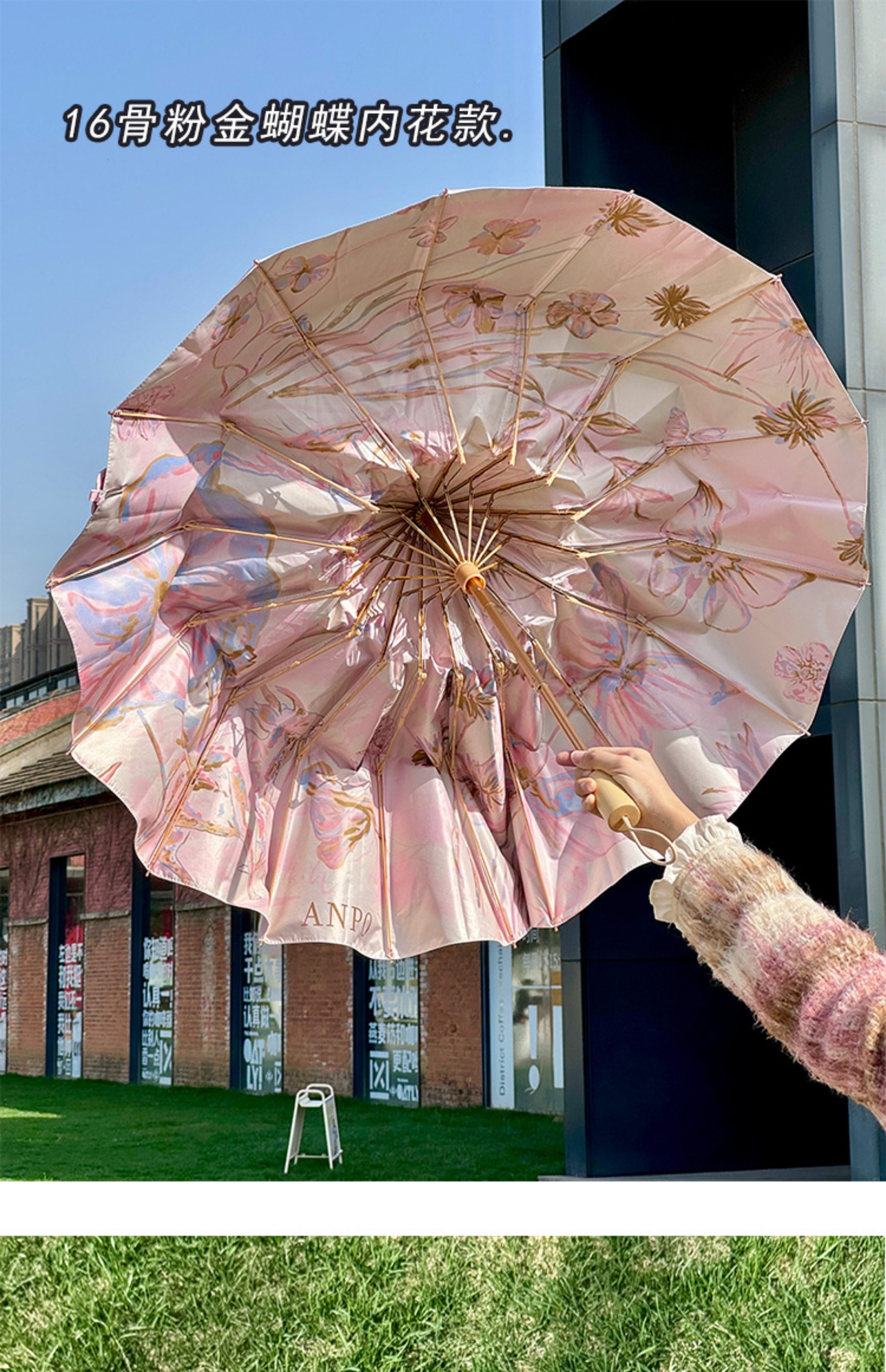 16본 확대 이중 바람 방지 차양 우산, 자외선 차단, 비가 오나 눈이 오나, 여성용 고급 접이식 태양 보호 우산