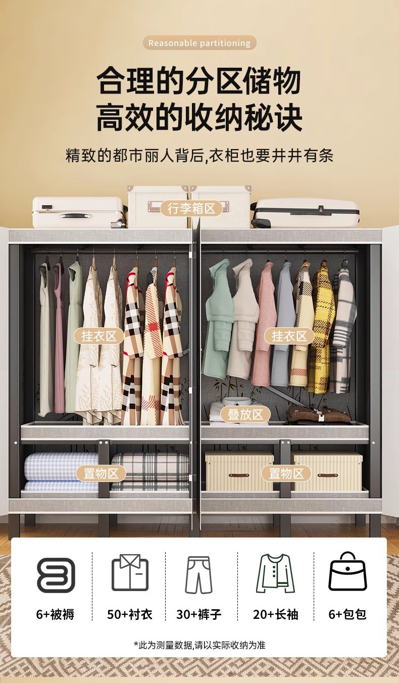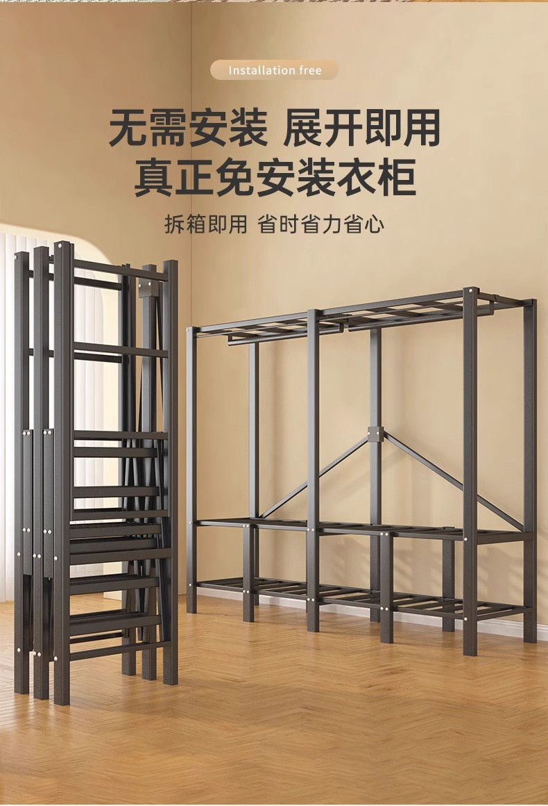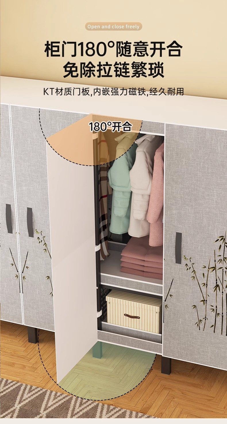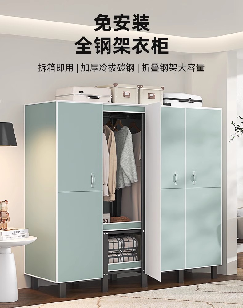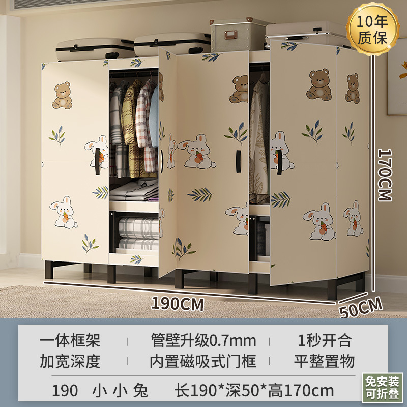 설치 무료 보관 옷장 가정용 침실 옷감 접이식 풀 스틸 프레임 마그네틱 도어 두꺼운 옷장스토어 가기