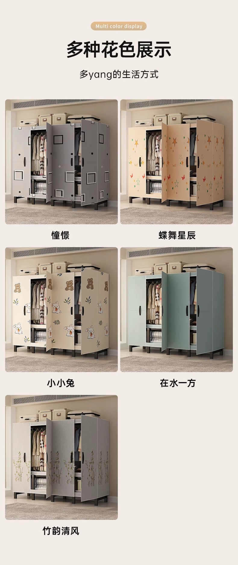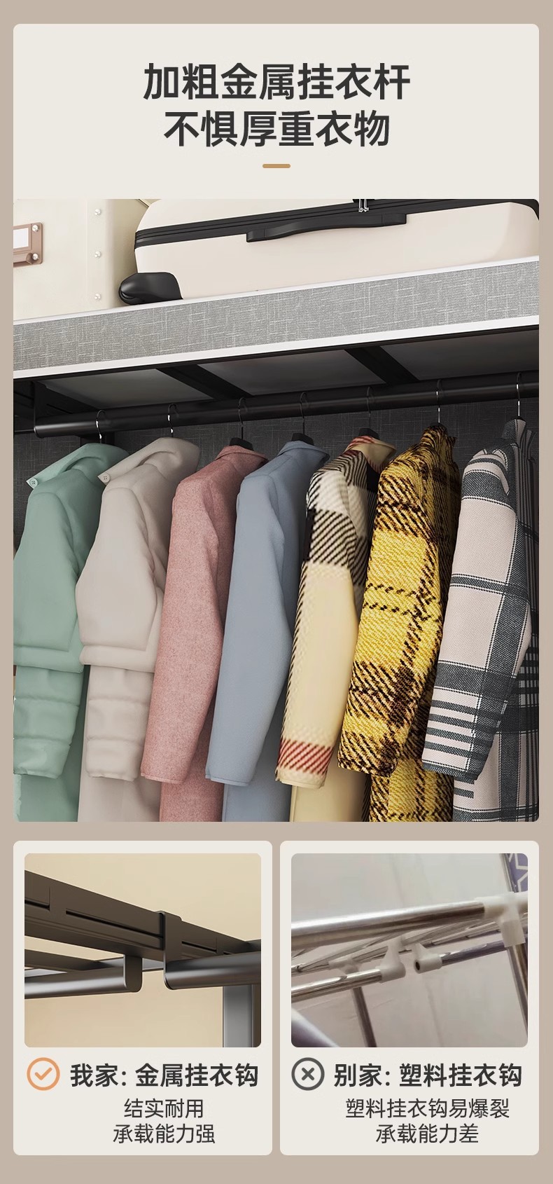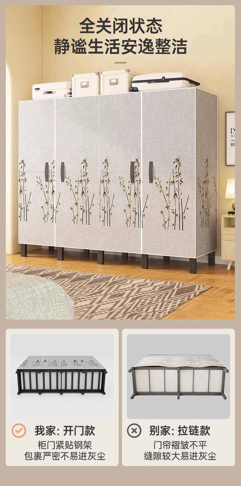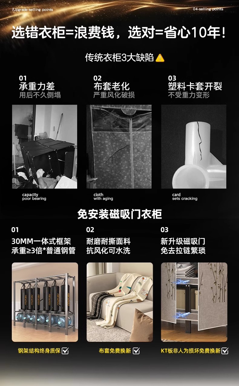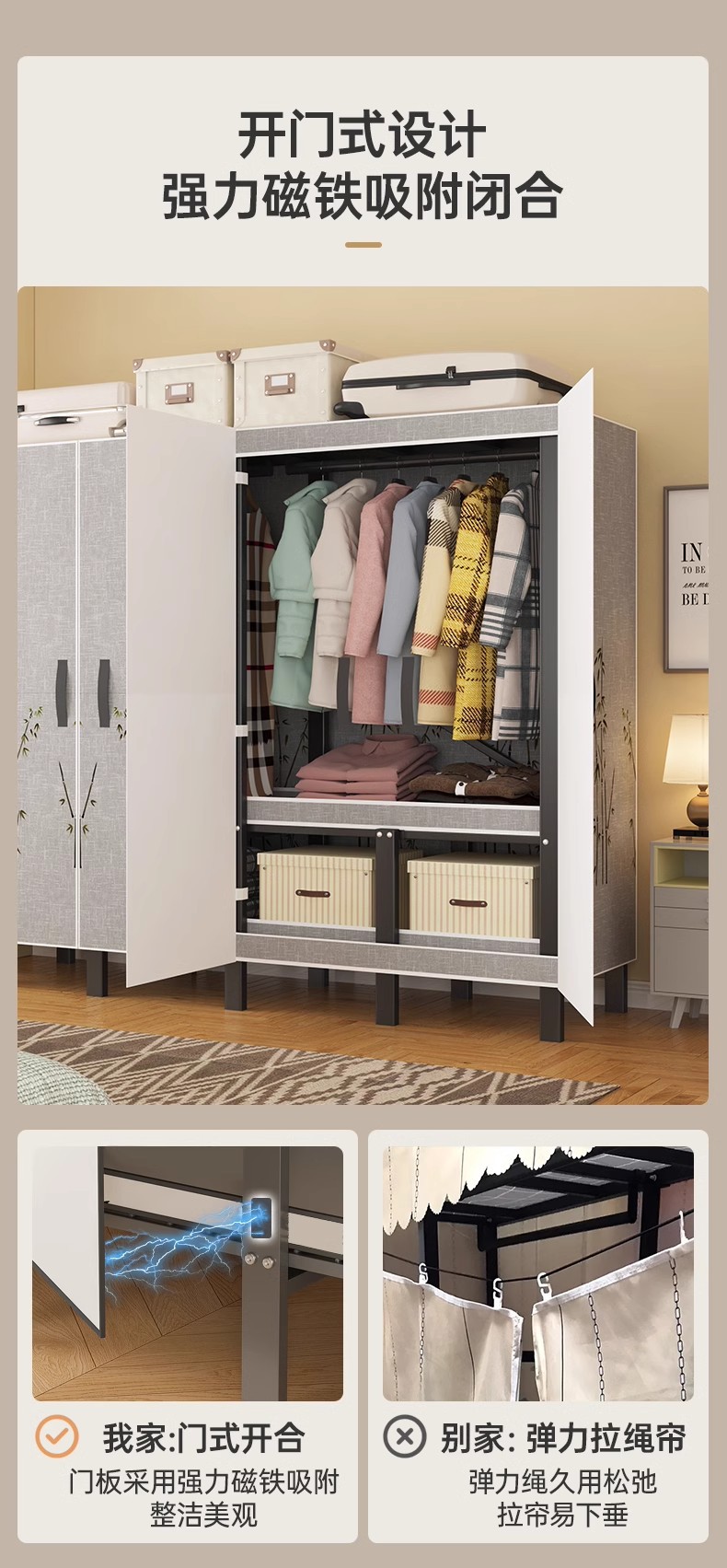 설치 무료 보관 옷장 가정용 침실 옷감 접이식 풀 스틸 프레임 마그네틱 도어 두꺼운 옷장스토어 가기
