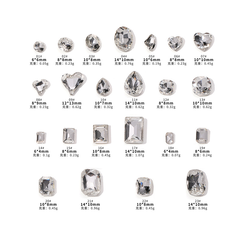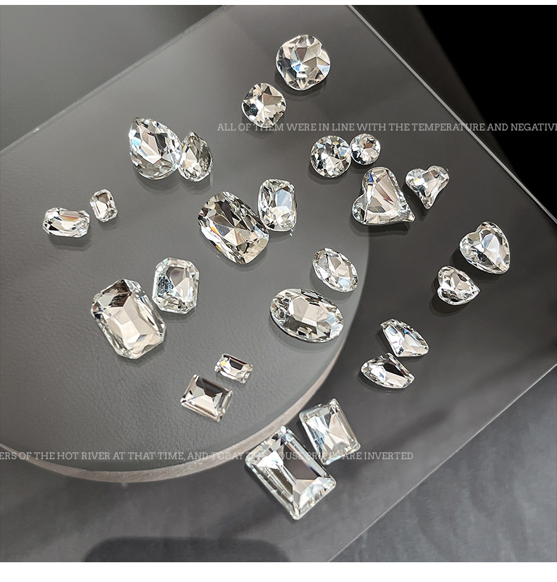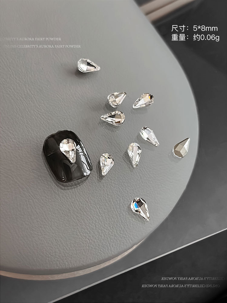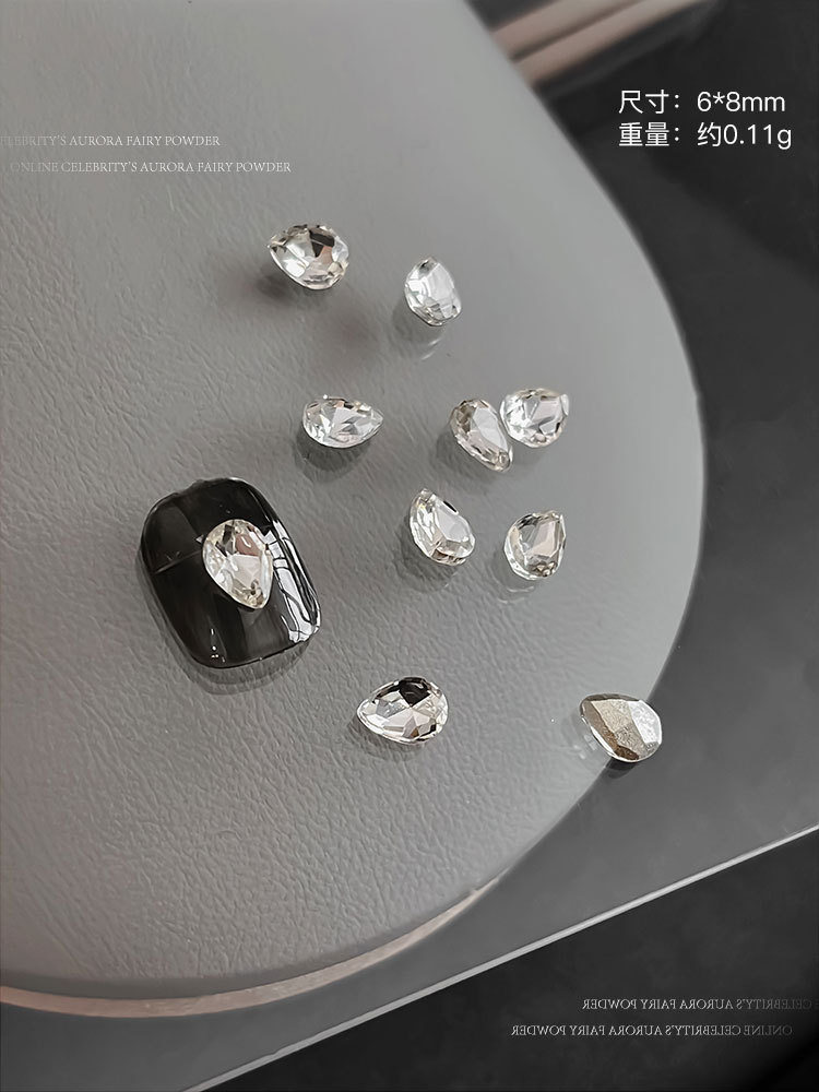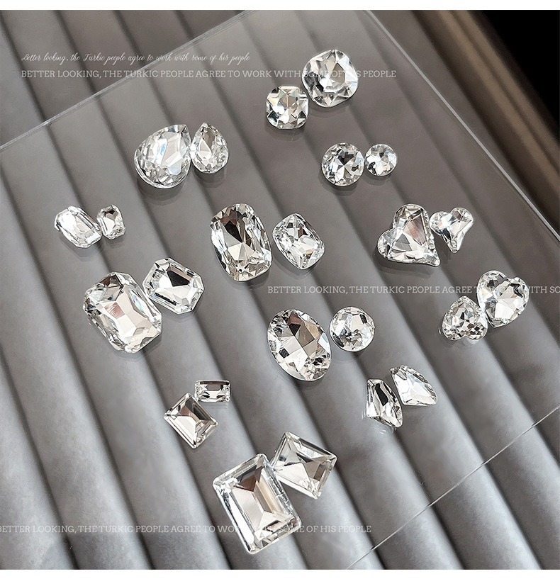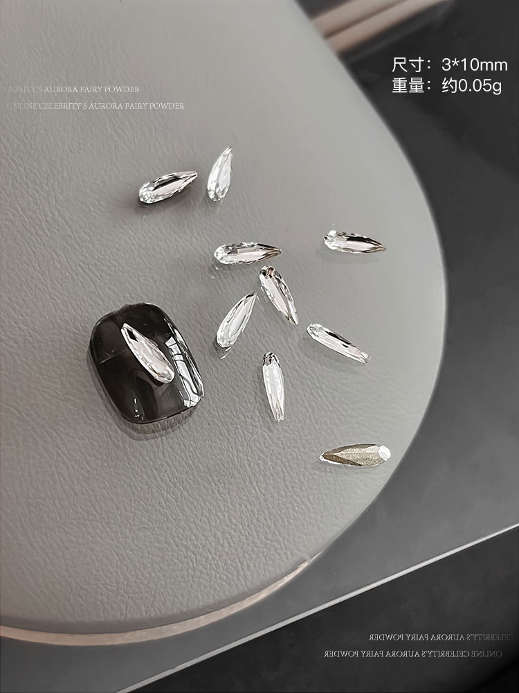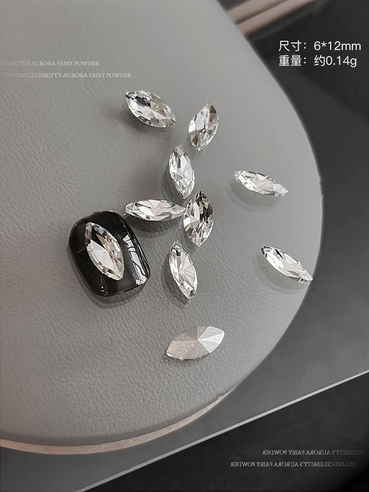 높은 제품 K9 투명 흰색 네일 아트 쥬얼리 플래시 뾰족한 바닥 드릴 타원형 긴 직각 특수 모양의 드릴 파일 드릴 네일 액세서리 도매