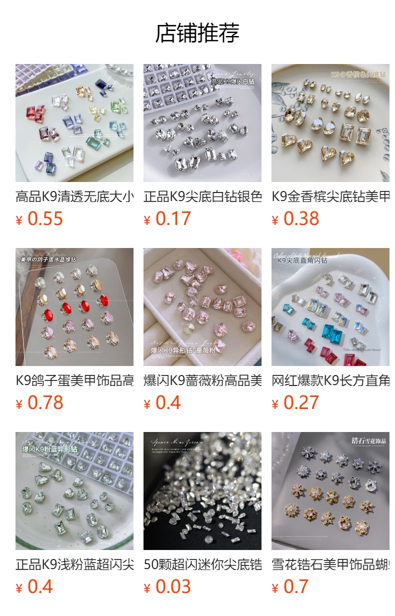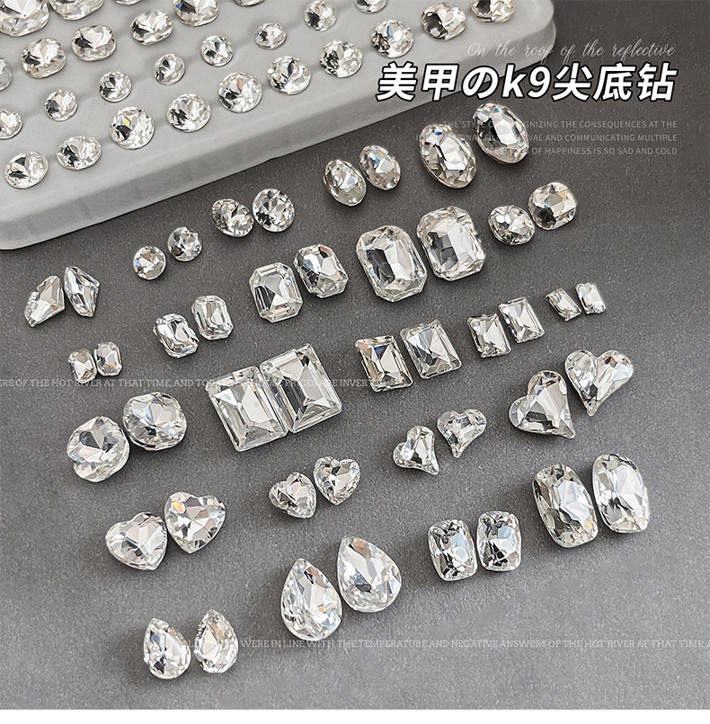 높은 제품 K9 투명 흰색 네일 아트 쥬얼리 플래시 뾰족한 바닥 드릴 타원형 긴 직각 특수 모양의 드릴 파일 드릴 네일 액세서리 도매스토어 가기