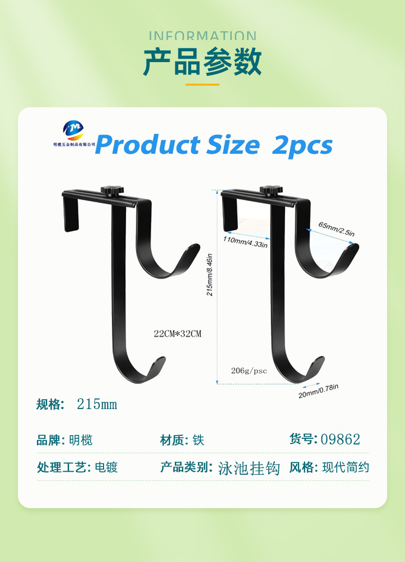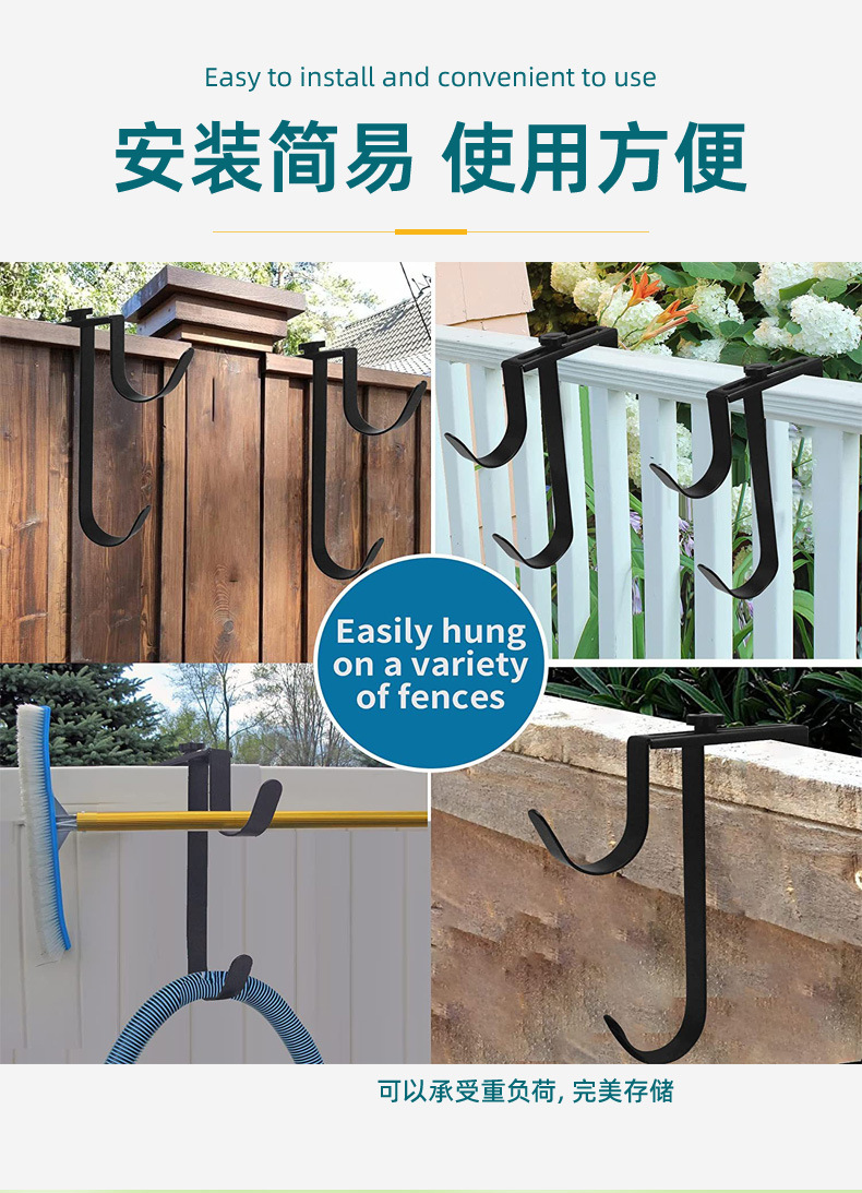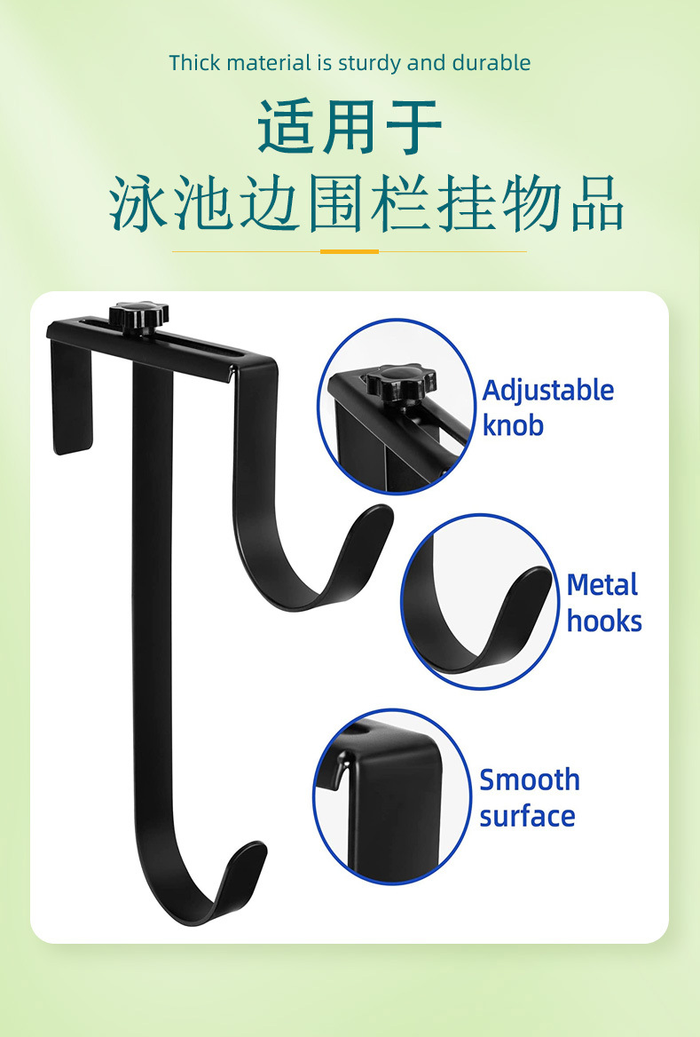 亚马逊热销新品可调节泳池杆挂钩三层用于悬挂泳池的金属栅栏挂钩