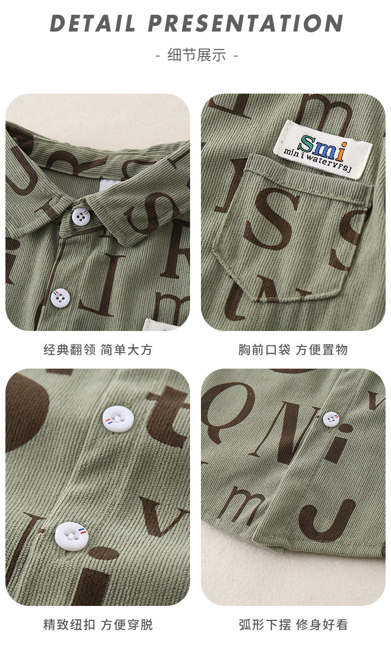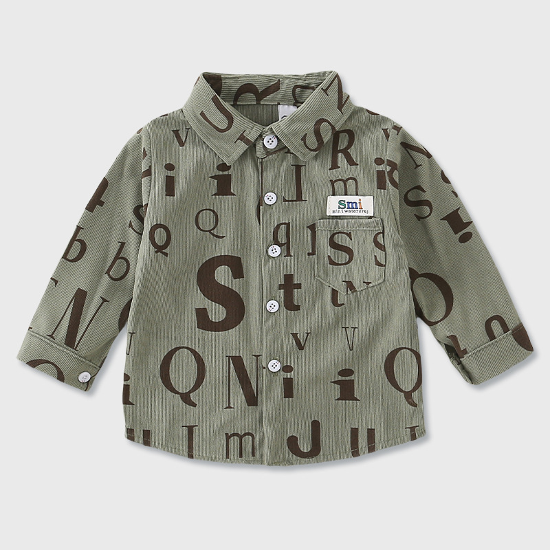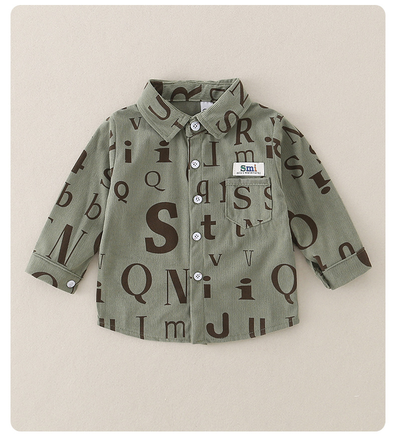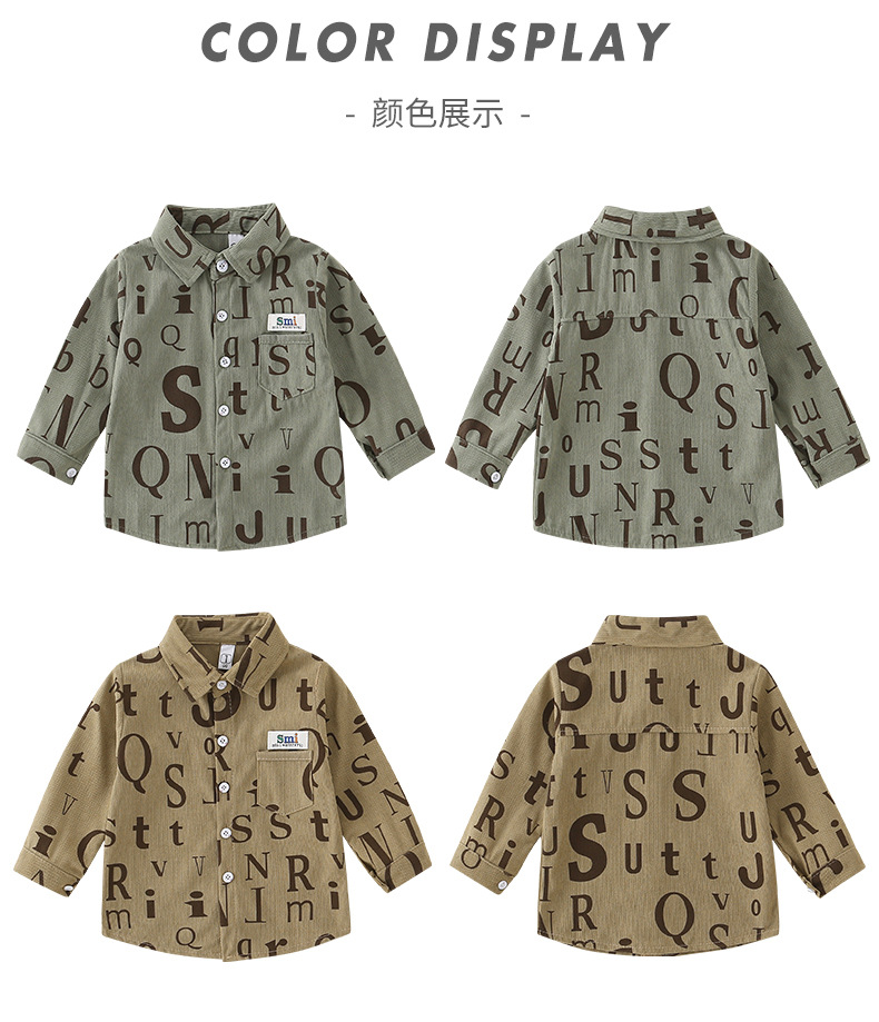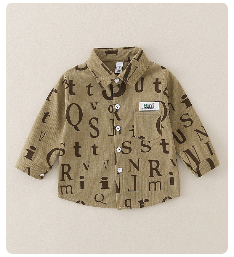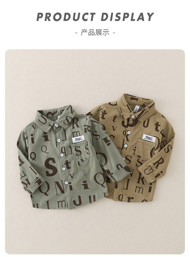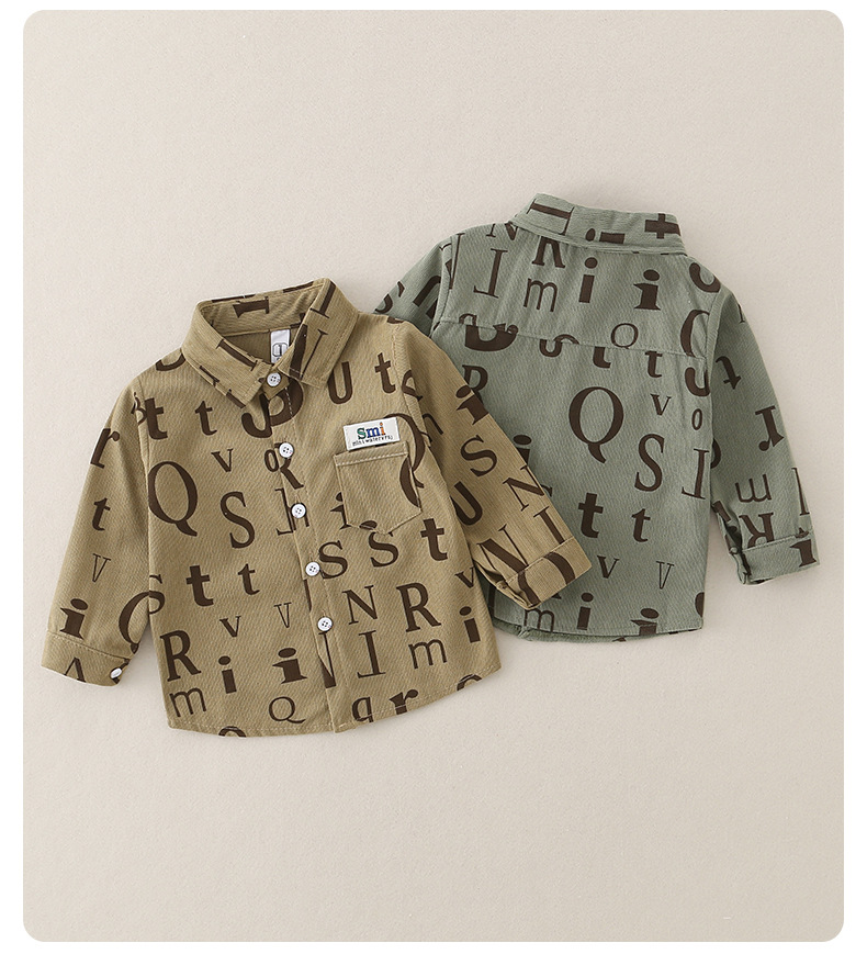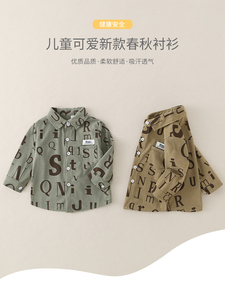 2026년 봄 신상품 남아 셔츠 A급 순면 아동용 긴팔 레터링 스타일 한국 스타일 캐주얼 재킷스토어 가기