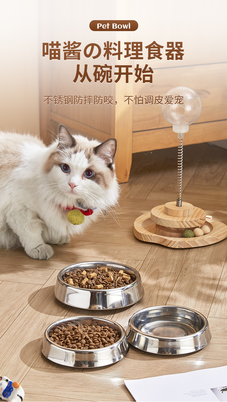 두꺼운 스테인레스 스틸 애완 동물 고양이 그릇 미끄럼 방지 다목적 고양이와 개 먹는 도구 마시는 그릇 이중 목적 미끄럼 방지 애완 동물 먹기 도구스토어 가기