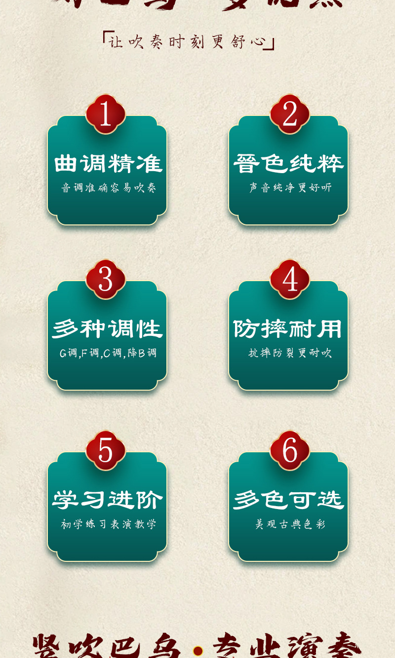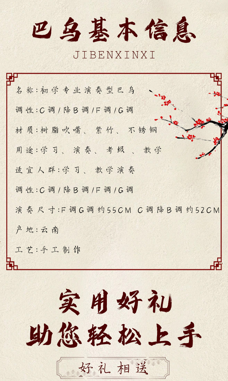 [3]关于气味的说明:为了使葫芦丝巴乌密封不漏风必须使用胶水粘合,胶水会在一段的时间内有气味散发出来,通风过一阵子就好了。有的材质为天然葫芦的音管为竹木材质的,加工后会有自然的气味散发出来,亦或者是木香味,竹清味,这都是正常的。有的款式的有上漆工艺,同样通风后就会散发的。请买家放心使用。新买的几十万的家用汽车车内也会有气味的,请理解。如果接受不了,退货往返运费是由买家承担的。