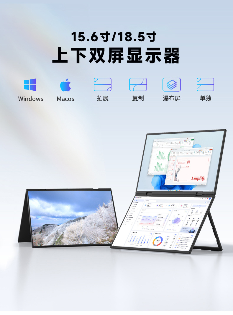 주식 거래 디자인 사무용 휴대용 듀얼 스크린 모니터, 고화질 상하 듀얼 스크린 접이식 노트북 확장 스크린스토어 가기