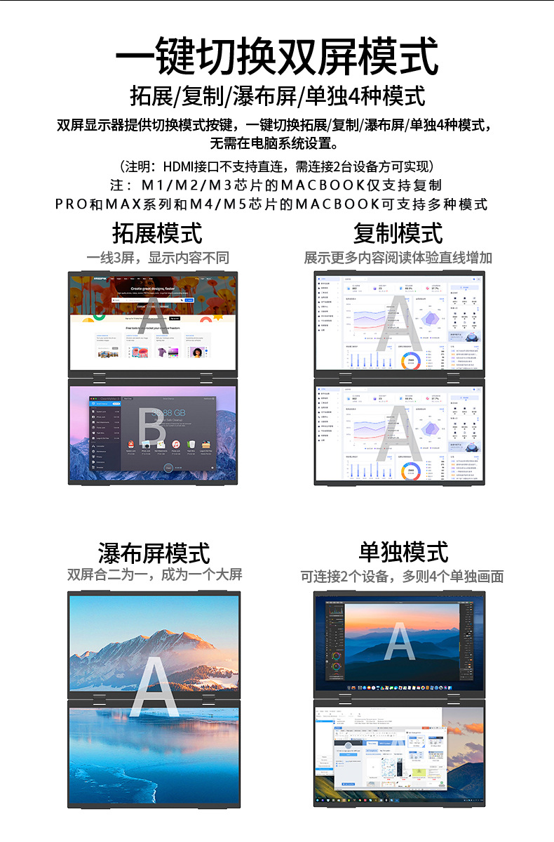 주식 거래 디자인 사무용 휴대용 듀얼 스크린 모니터, 고화질 상하 듀얼 스크린 접이식 노트북 확장 스크린