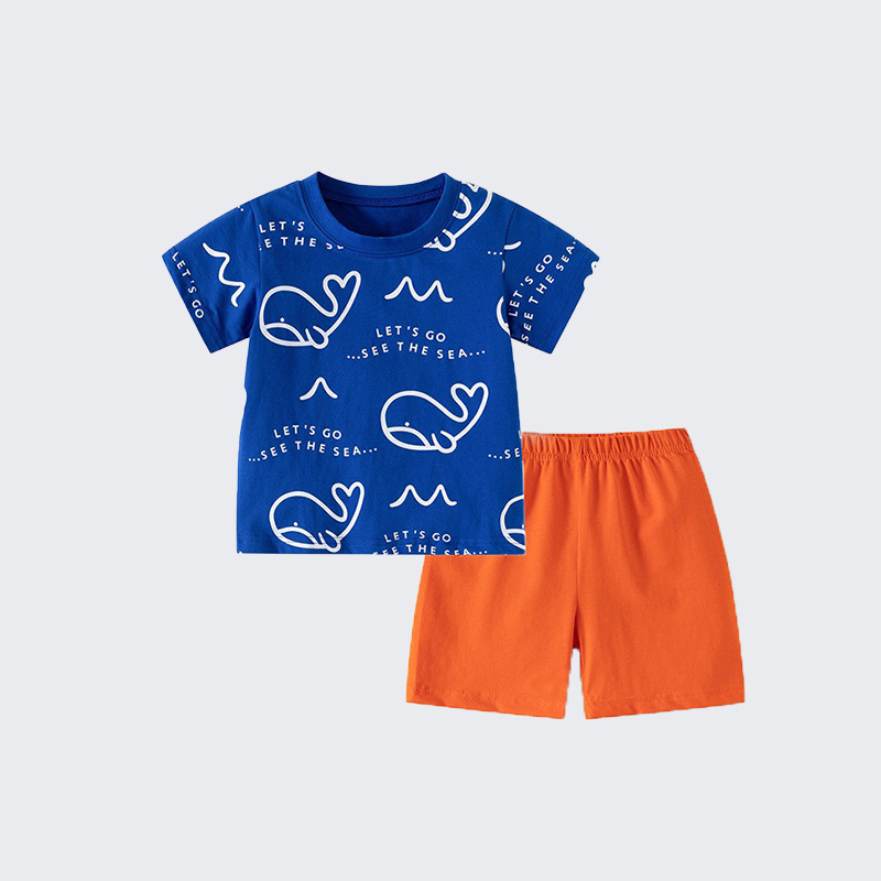 어린이 반팔 세트 돌고래 순면 남아 티셔츠 아기 여름 아동복 여아 반바지 옷 여름 의류 도매