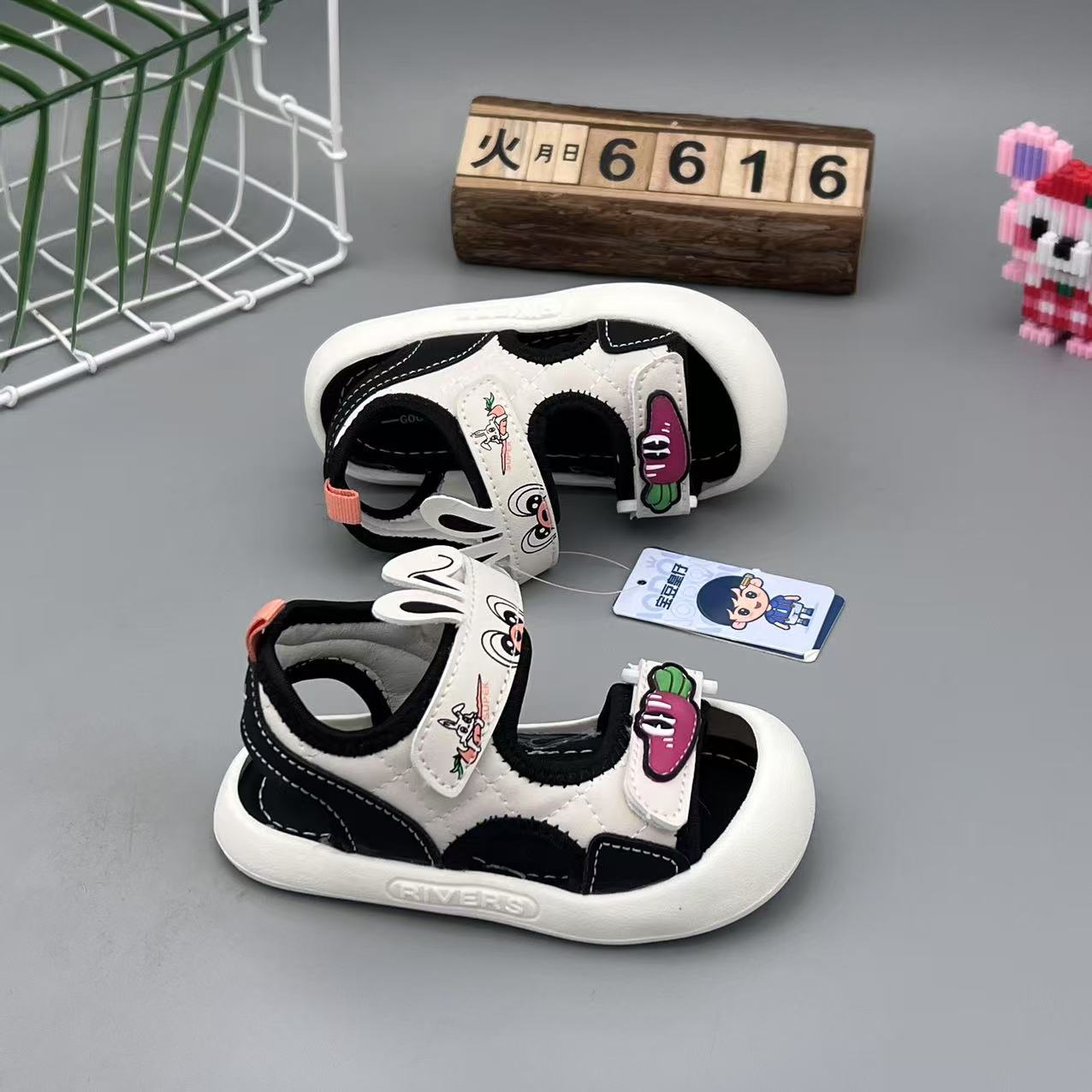 안티 킥 아기 샌들 2025 여름 소년 소녀를위한 새로운 만화 유아 신발 부드러운 밑창 비치 신발 캐주얼스토어 가기
