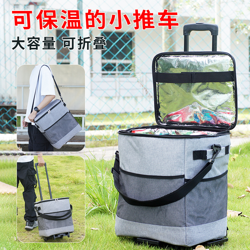 보온 식료품 쇼핑 카트 접이식 두꺼운 보온 가방 카트 쇼핑 카트 야외 캠핑 신선 유지 보관 상자 카트