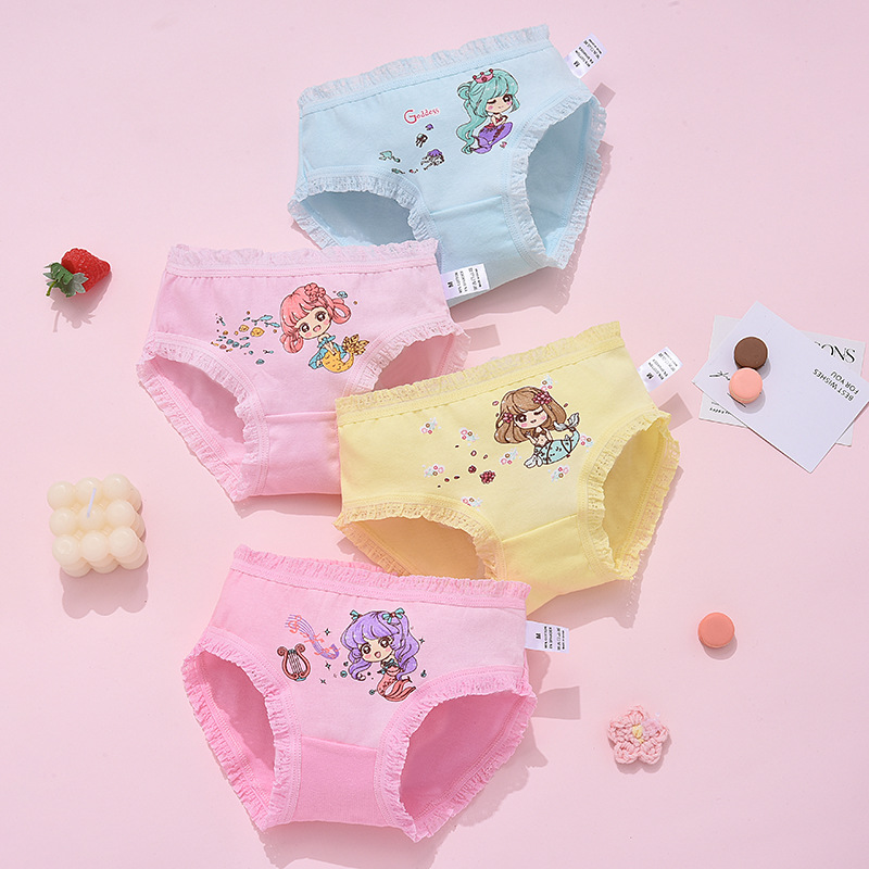 크로스보더 순면 아동 속옷, 만화 캐릭터 반바지, 여아용 프린트 팬티, 학생용 삼각팬티, 항균스토어 가기
