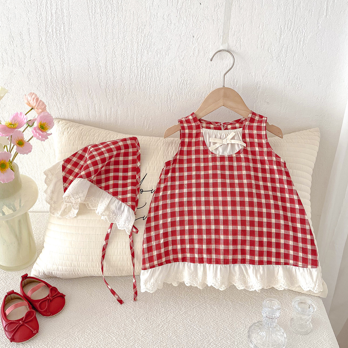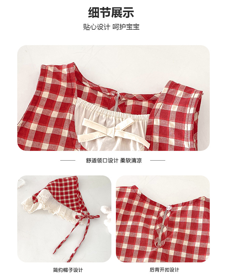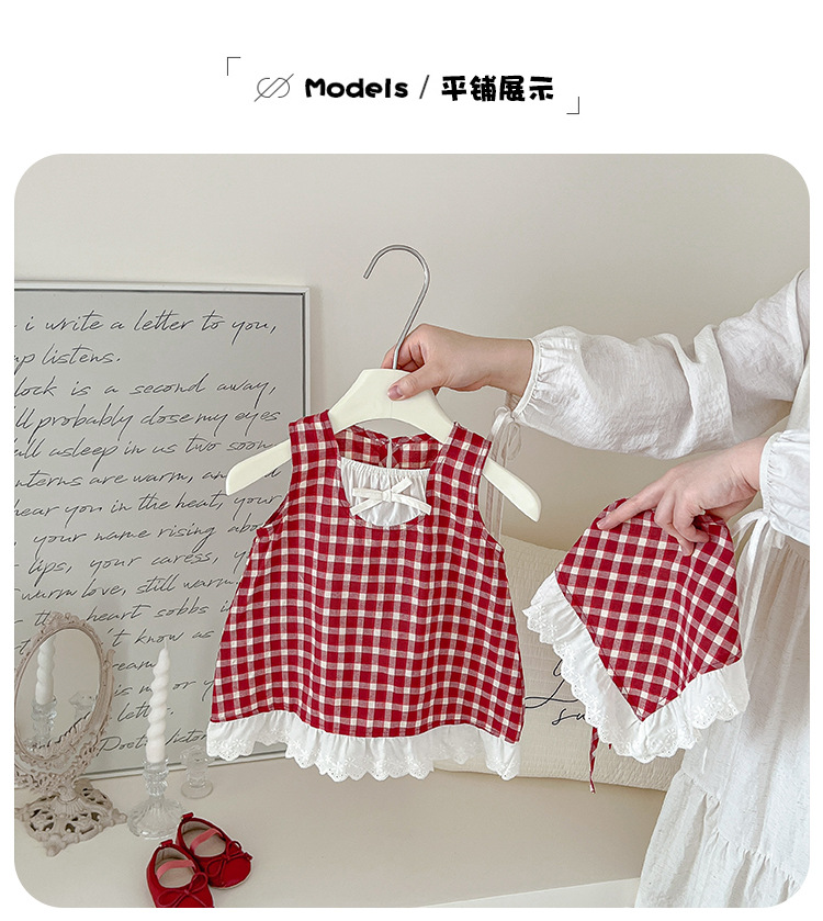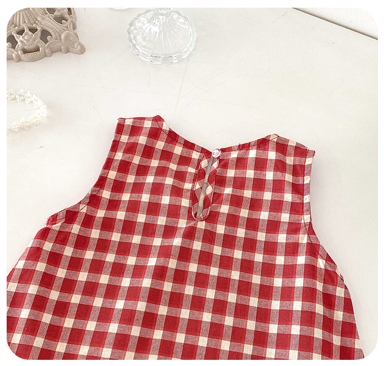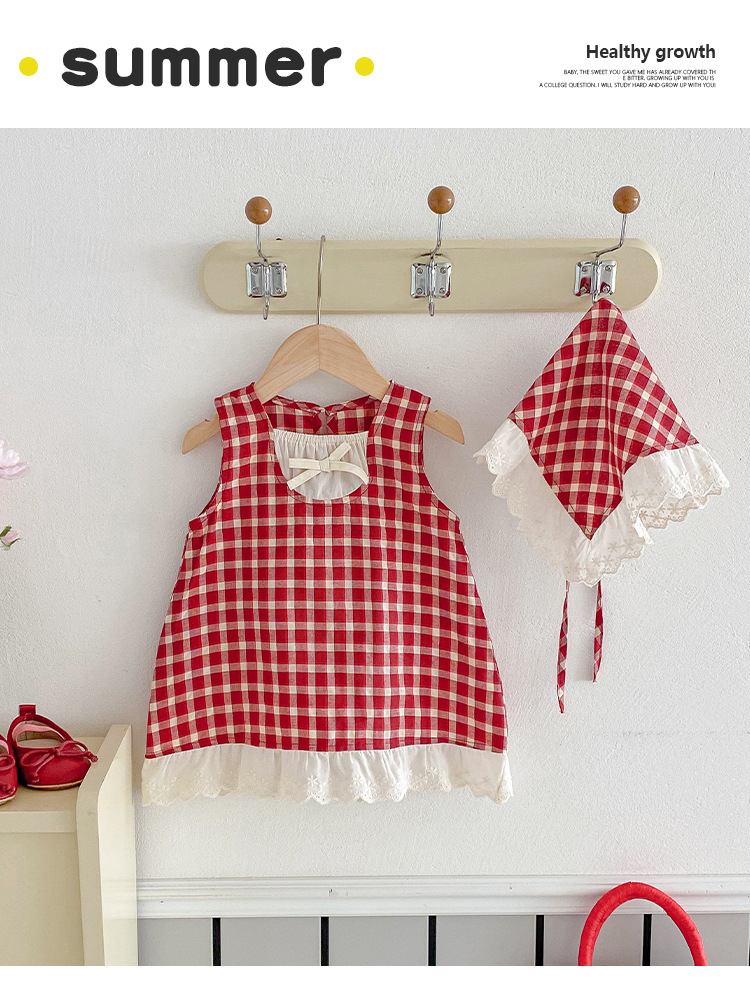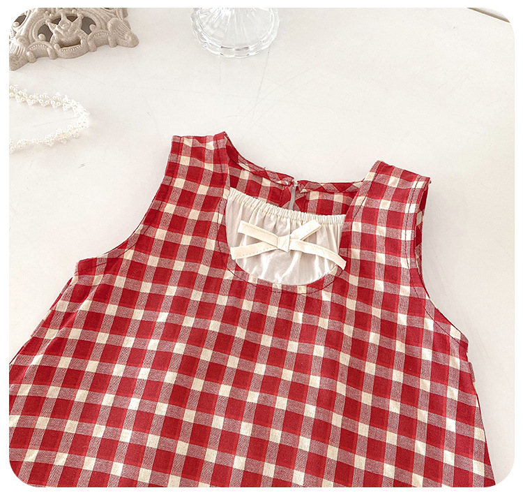 아기 소녀의 여름 원피스 2025 새로운 어린 소녀의 Vise 원피스 아기의 여름 서양식 빨간 격자 무늬 원피스스토어 가기