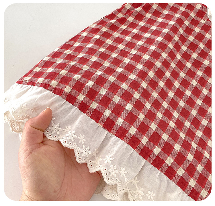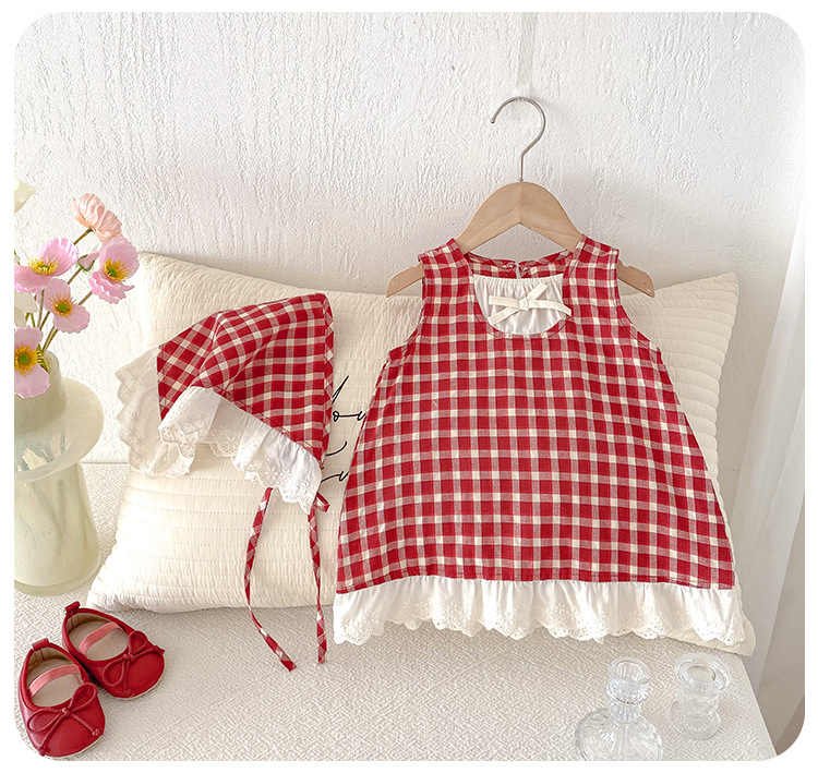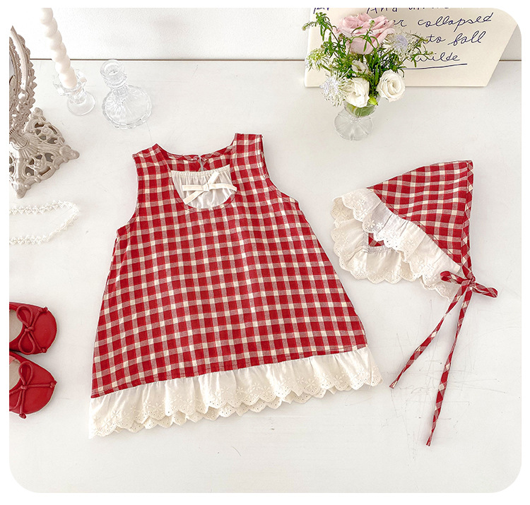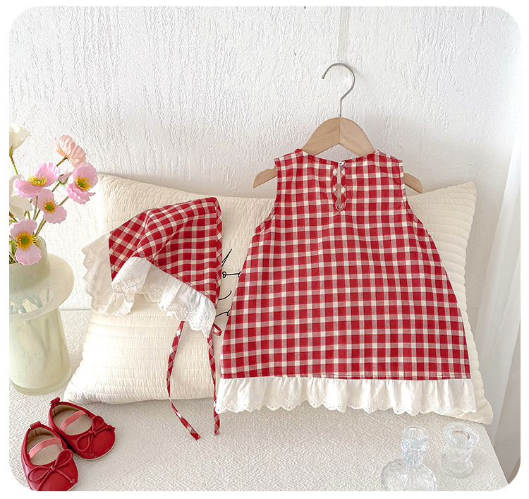 아기 소녀의 여름 원피스 2025 새로운 어린 소녀의 Vise 원피스 아기의 여름 서양식 빨간 격자 무늬 원피스