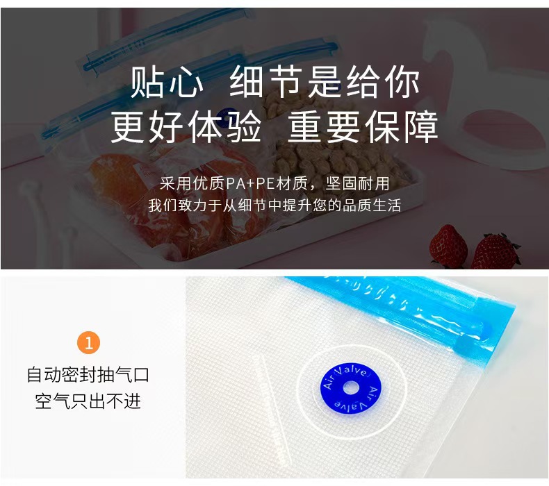 진공 식품 등급 보관용 질감 가방 두꺼운 조리된 음식 밀봉 압착 백 신선도 유지 흰색 플라스틱 밸브 압축 가방