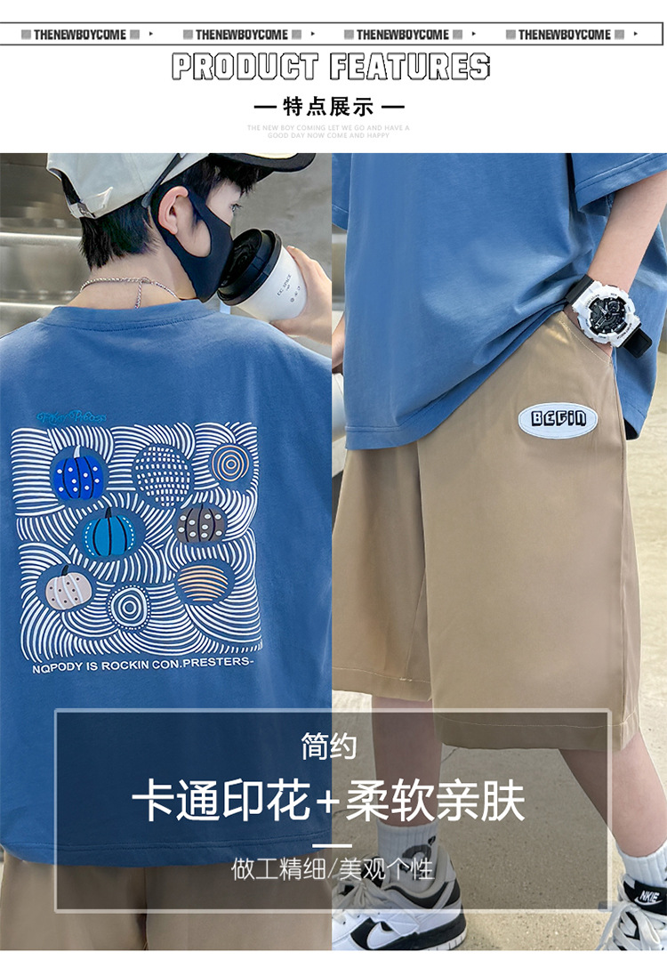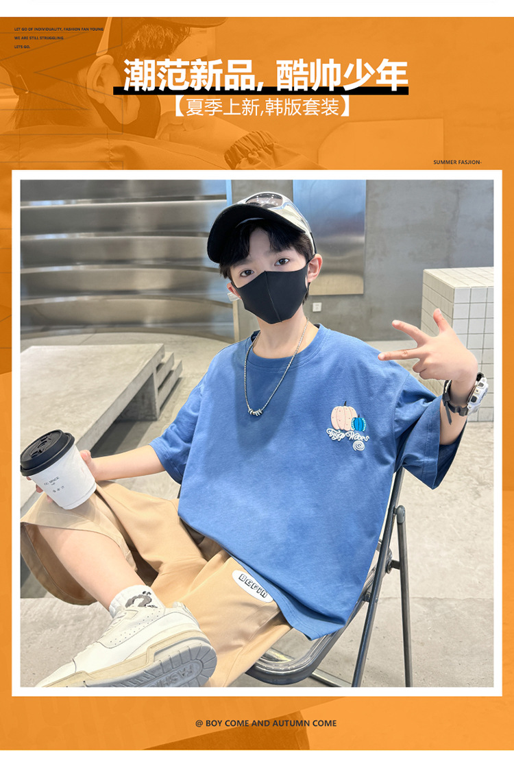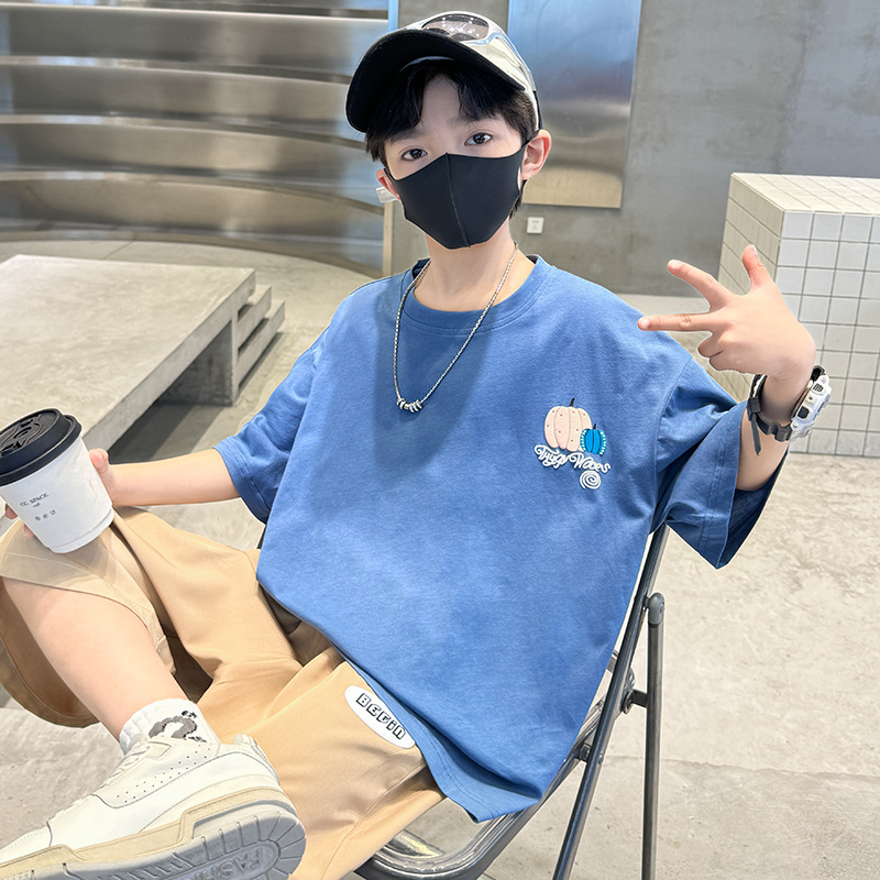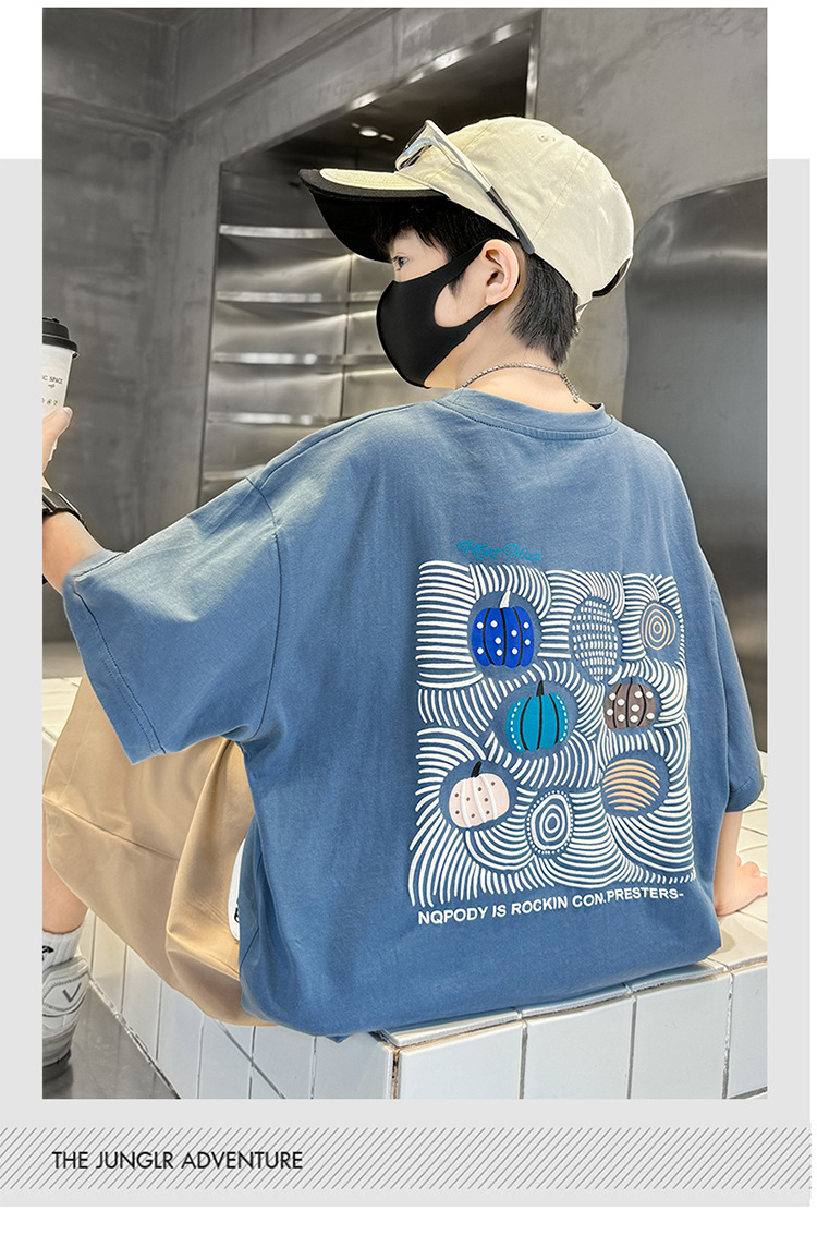 소년 여름 만화 반팔 티셔츠 2025 새로운 중대형 어린이 잘 생긴 느슨한 스포츠 캐주얼 티셔츠 탑 6