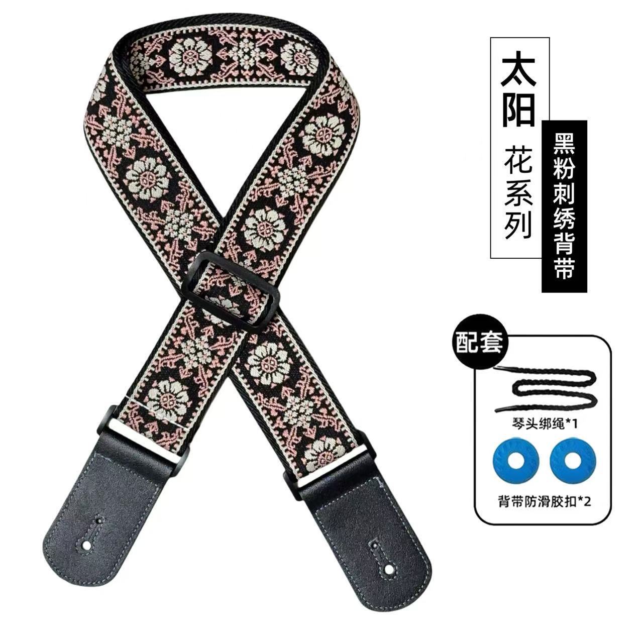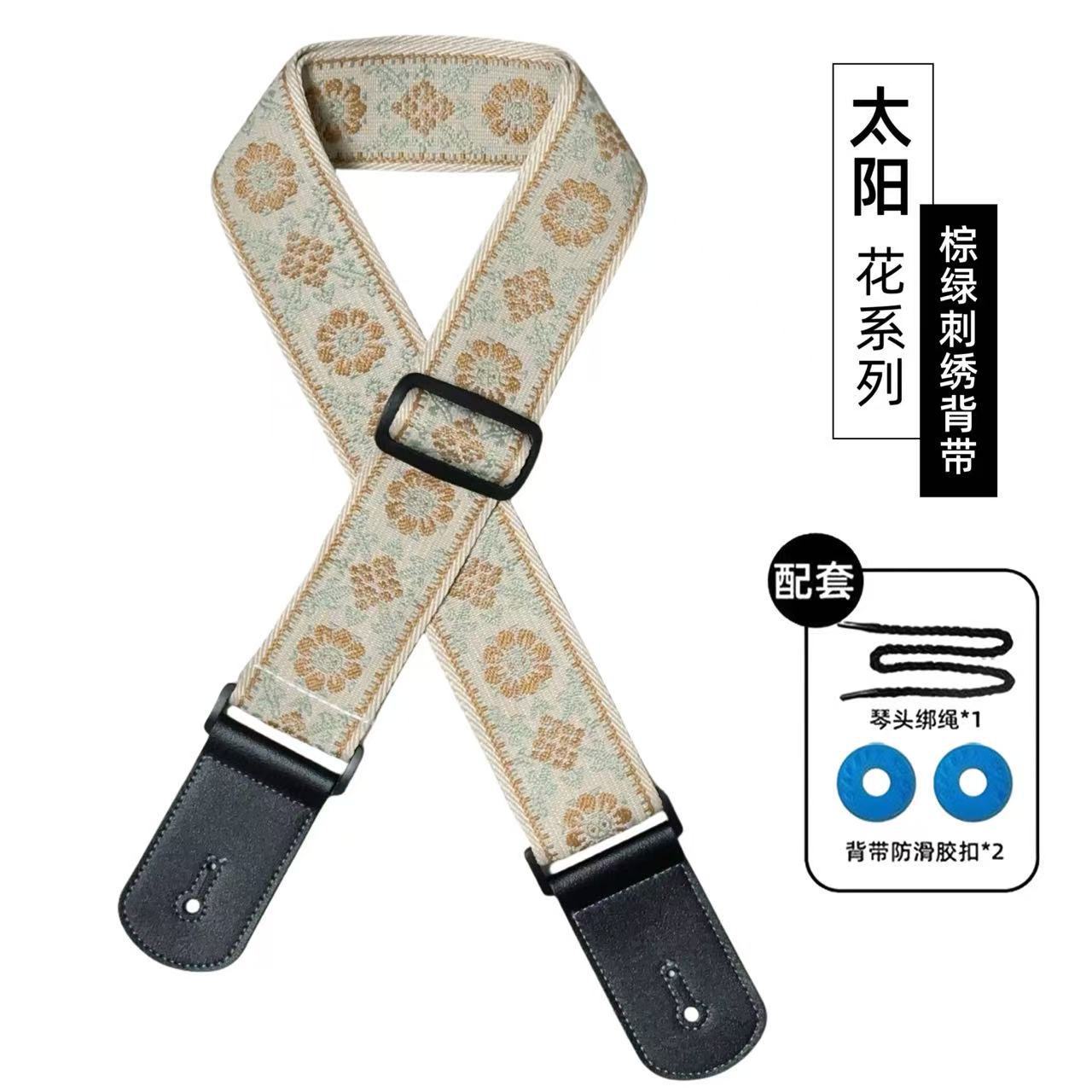 해바라기 자수 스트랩 포크 기타 어쿠스틱 기타 일렉트릭 기타 베이스 클래식 맞춤형 스트랩 유니버설
