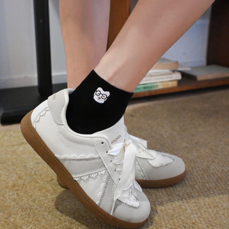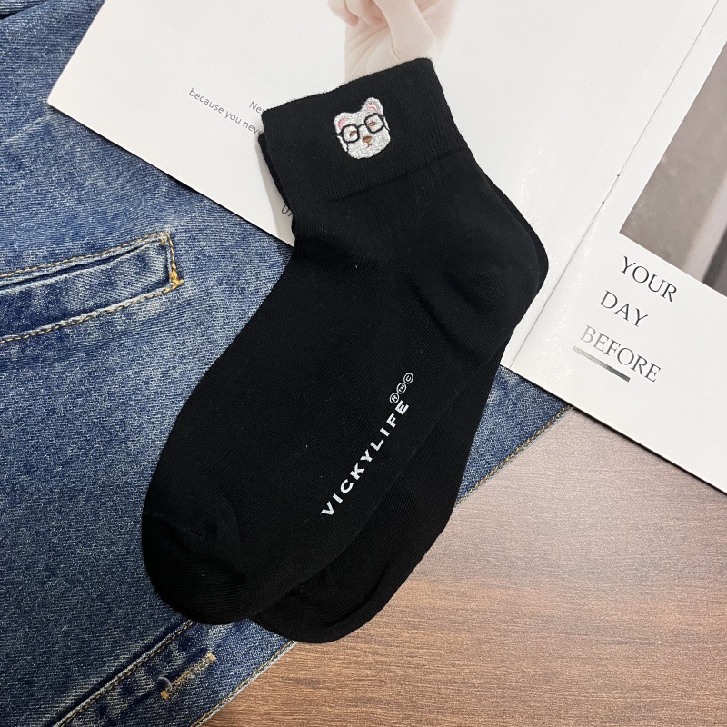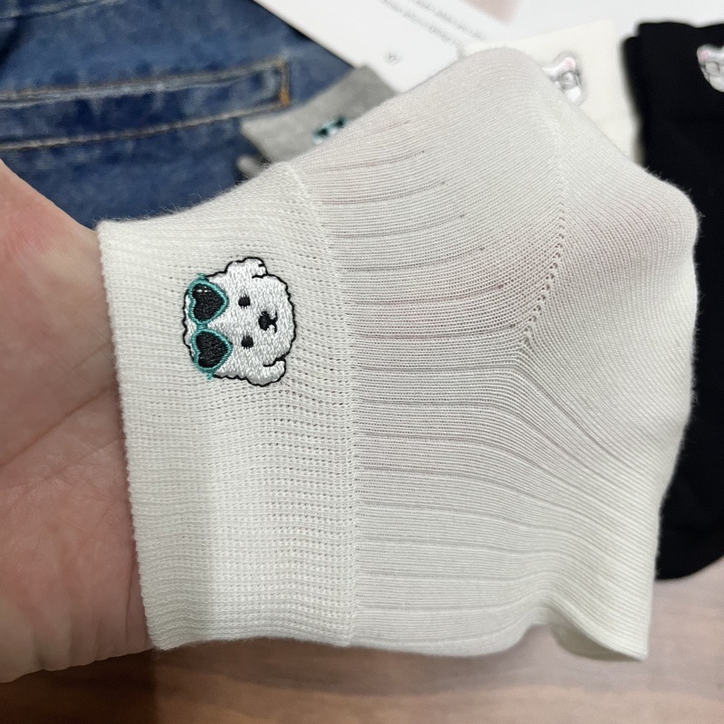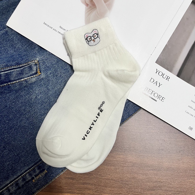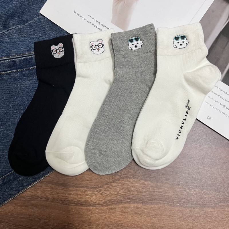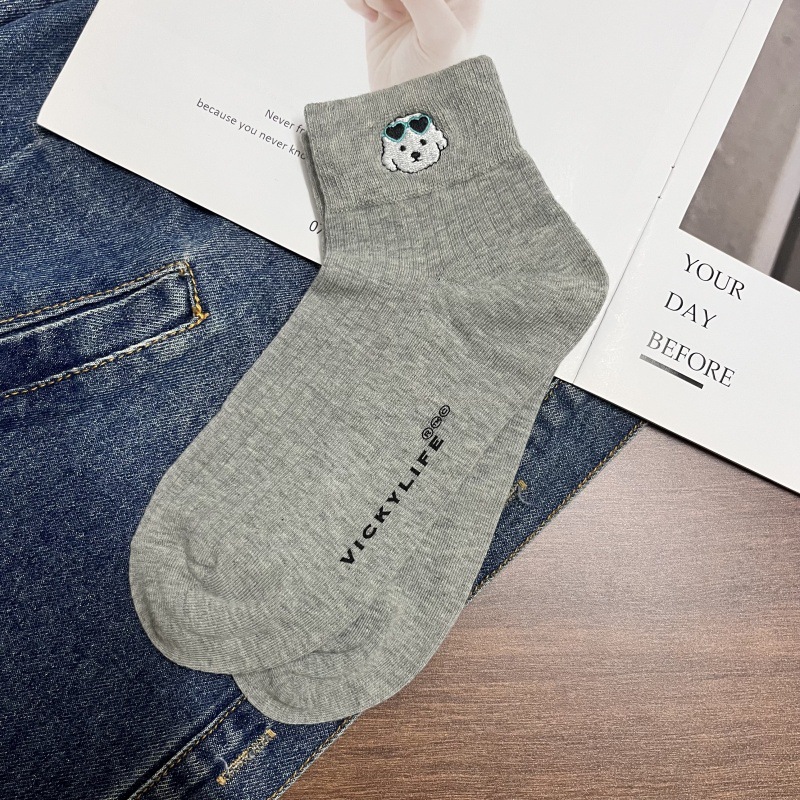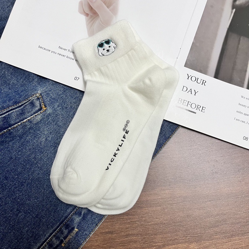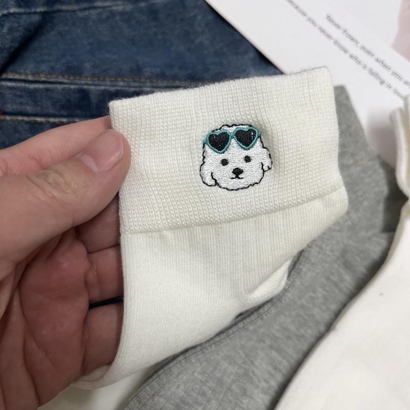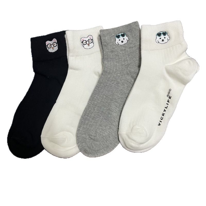 2025新款春夏袜子卡通萌宠狗狗少女袜纯色棉袜女吸汗舒适潮短筒袜
