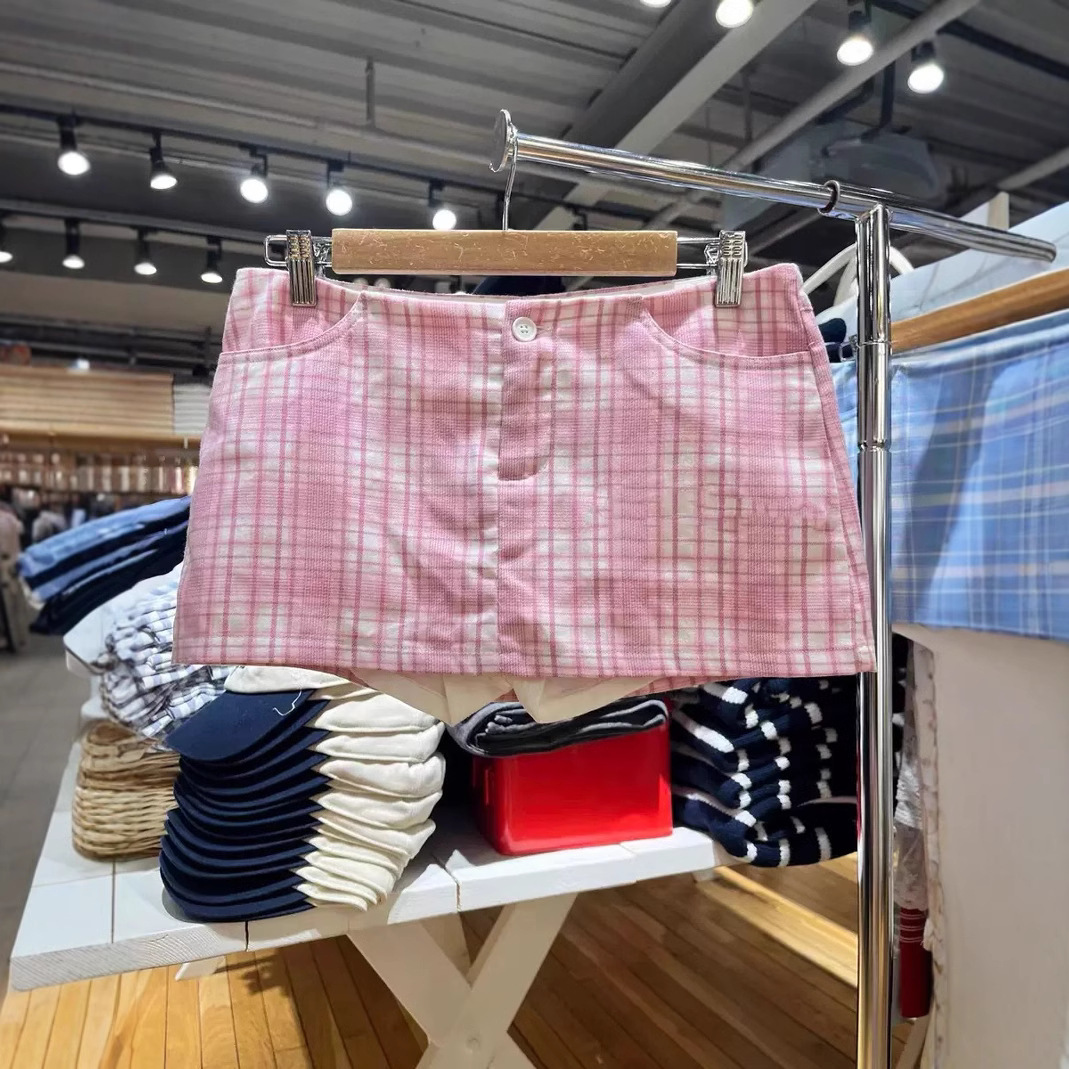BM 스타일 대학 스타일 핑크 격자 무늬 스커트 하이 웨이스트 핫 소녀 미니 스커트 여성용 힙 스커트스토어 가기