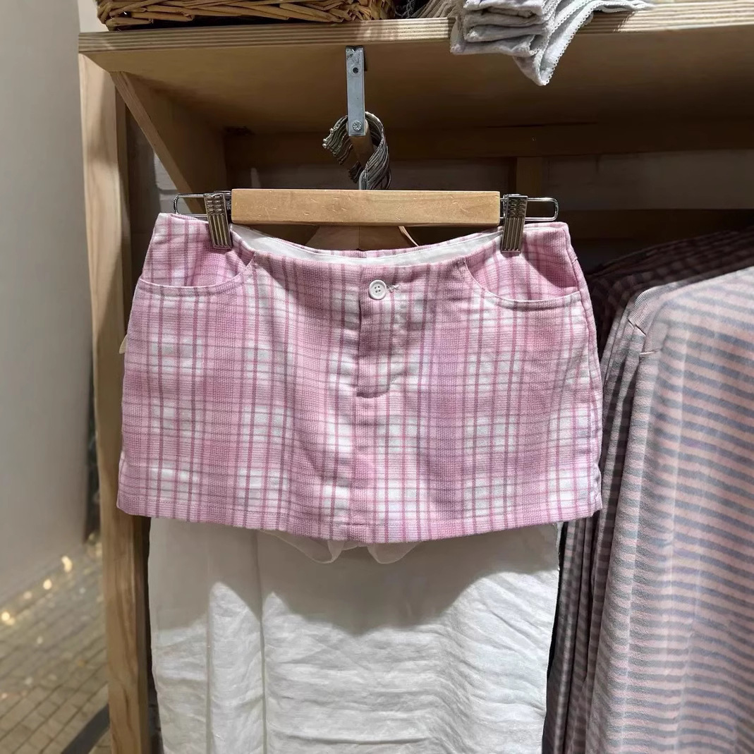 BM 스타일 대학 스타일 핑크 격자 무늬 스커트 하이 웨이스트 핫 소녀 미니 스커트 여성용 힙 스커트
