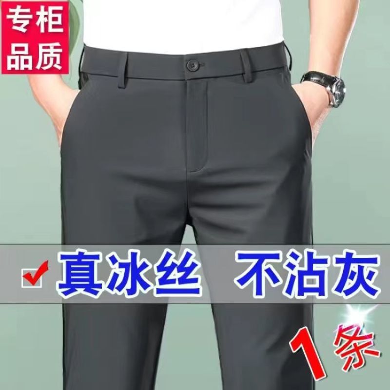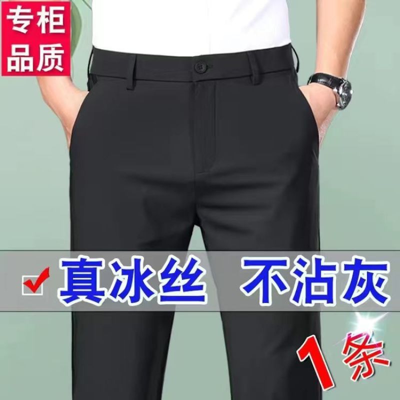 아이스 실크 고탄성 남성 캐주얼 바지 스트레이트 루즈 비즈니스 노아이론 바지 하이 엔드 드레이프 여름 얇은 바지스토어 가기