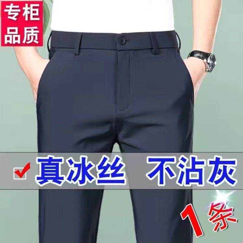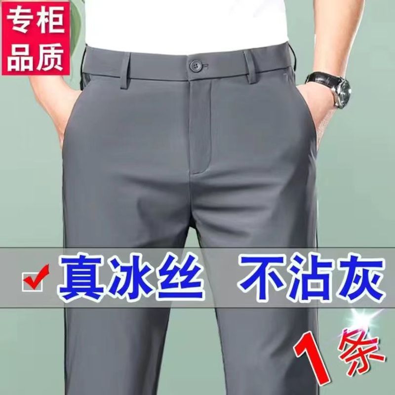 아이스 실크 고탄성 남성 캐주얼 바지 스트레이트 루즈 비즈니스 노아이론 바지 하이 엔드 드레이프 여름 얇은 바지
