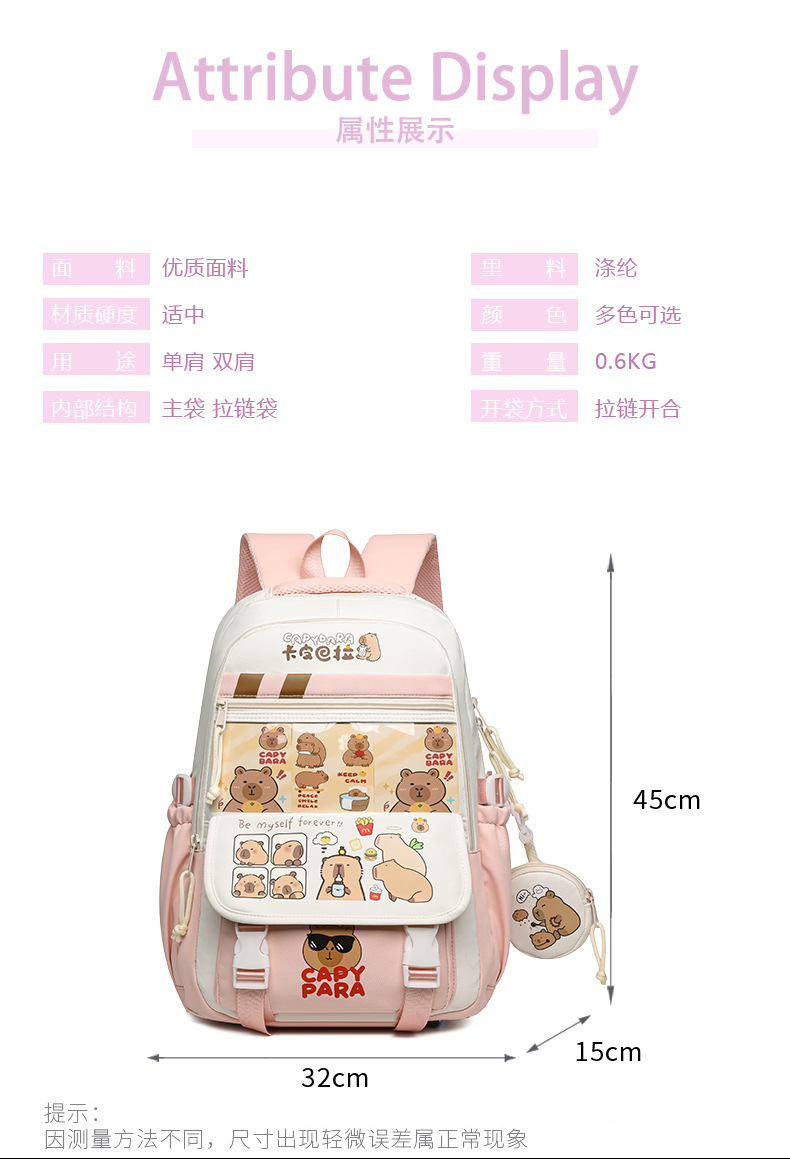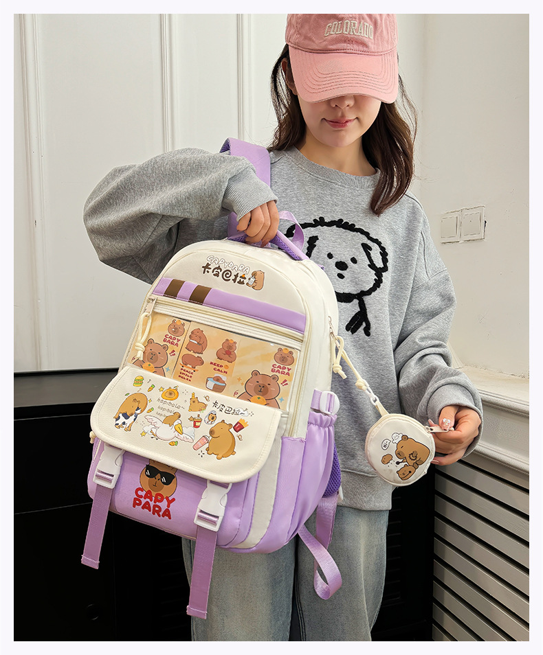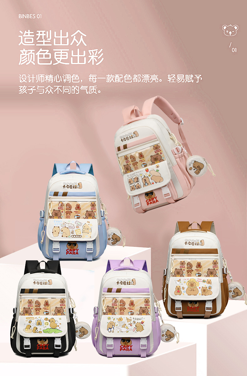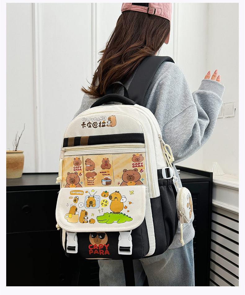 새로운 Kapibala Capybara 경량 Schoolbag Ridge Protector 방수 어린이 배낭 경량 대용량 배낭 초등 학생을위한 배낭스토어 가기
