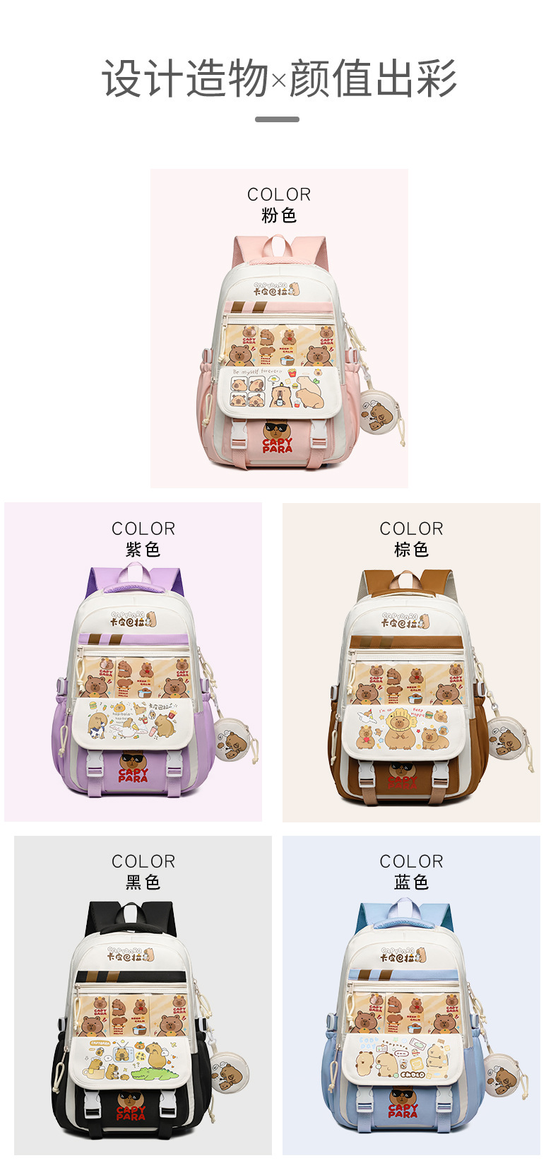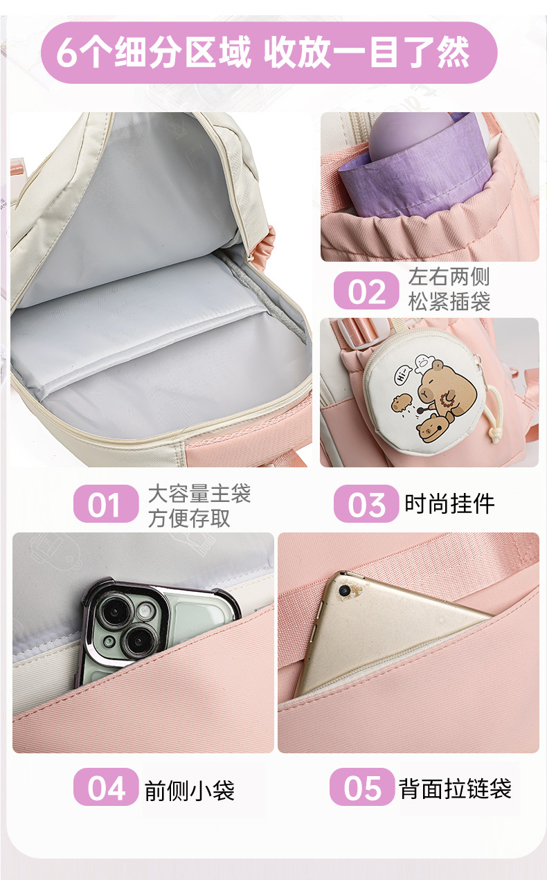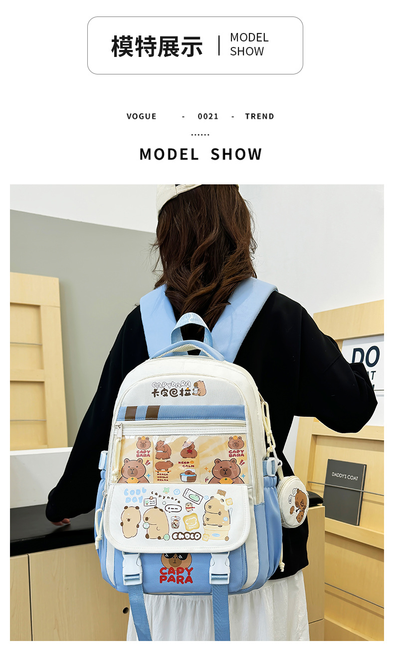 새로운 Kapibala Capybara 경량 Schoolbag Ridge Protector 방수 어린이 배낭 경량 대용량 배낭 초등 학생을위한 배낭스토어 가기