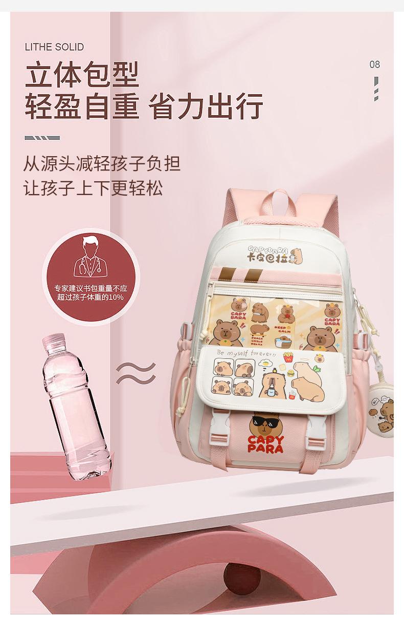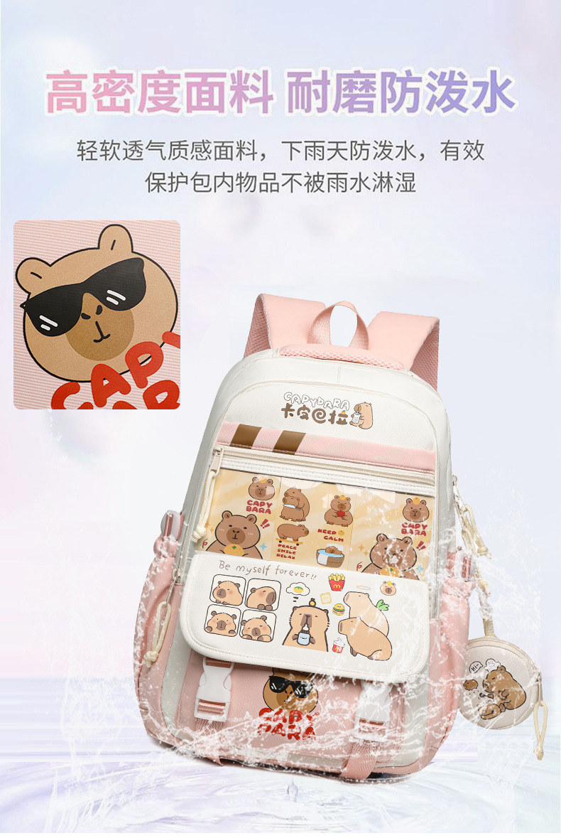 새로운 Kapibala Capybara 경량 Schoolbag Ridge Protector 방수 어린이 배낭 경량 대용량 배낭 초등 학생을위한 배낭
