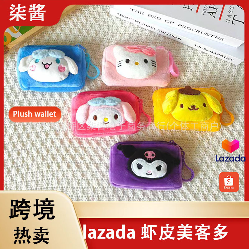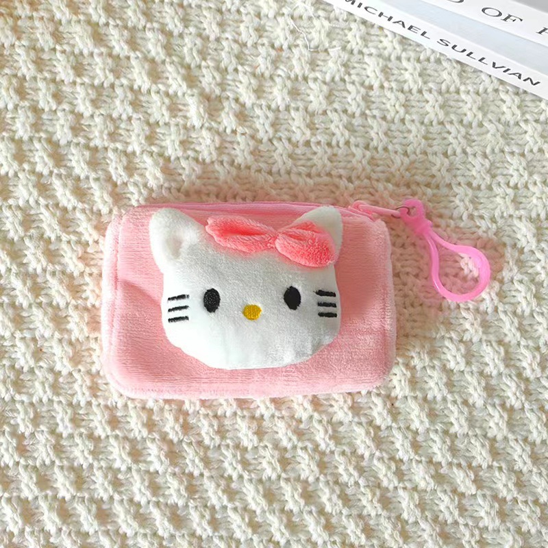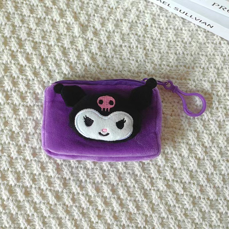 국경 간 대외 무역 Sanrio Kuromi 만화 귀여운 플러시 어린이 동전 지갑 가방 작은 키 체인 헤드폰 걸이