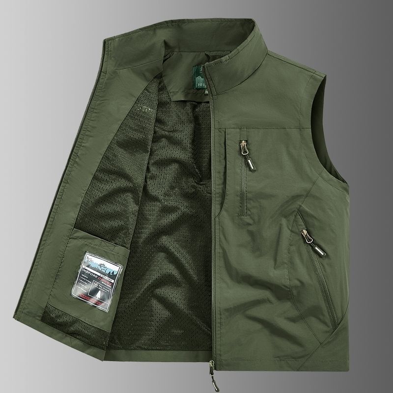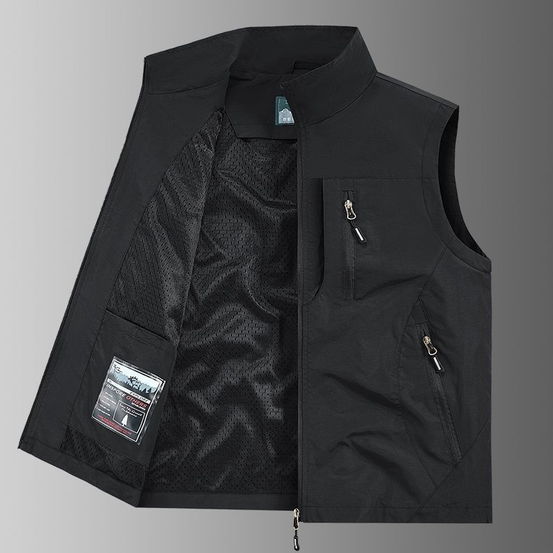 캐주얼 빠른 건조 조끼 남자의 얇은 포켓 칼라 야외 낚시 봄과 가을 재킷 조끼 사진 플러스 사이즈 툴링