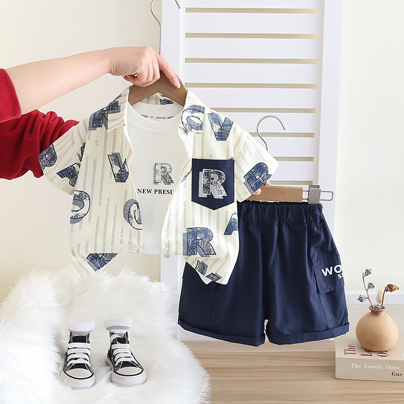 소년 여름 정장 2025 새로운 소년 캐주얼 여름 옷 아기 아동복 아기 반팔 셔츠 3 피스 세트 유행스토어 가기