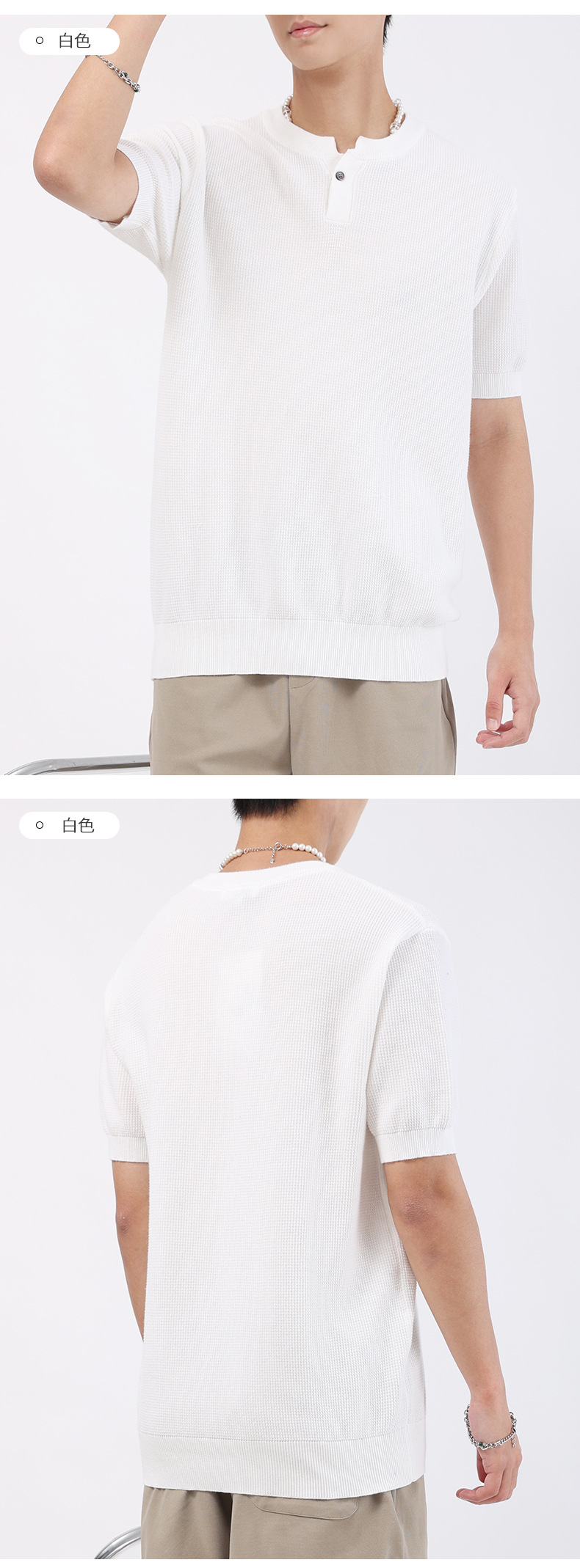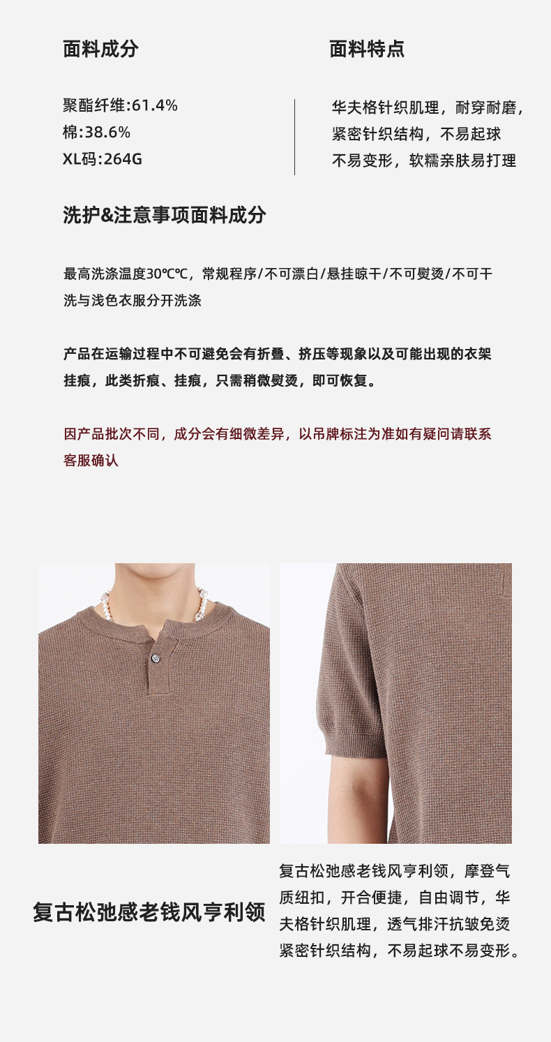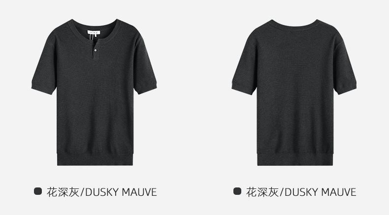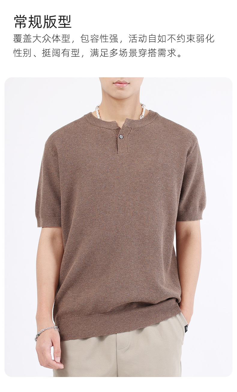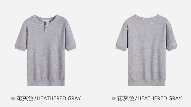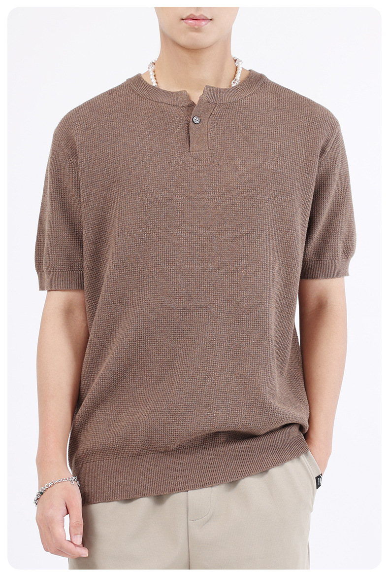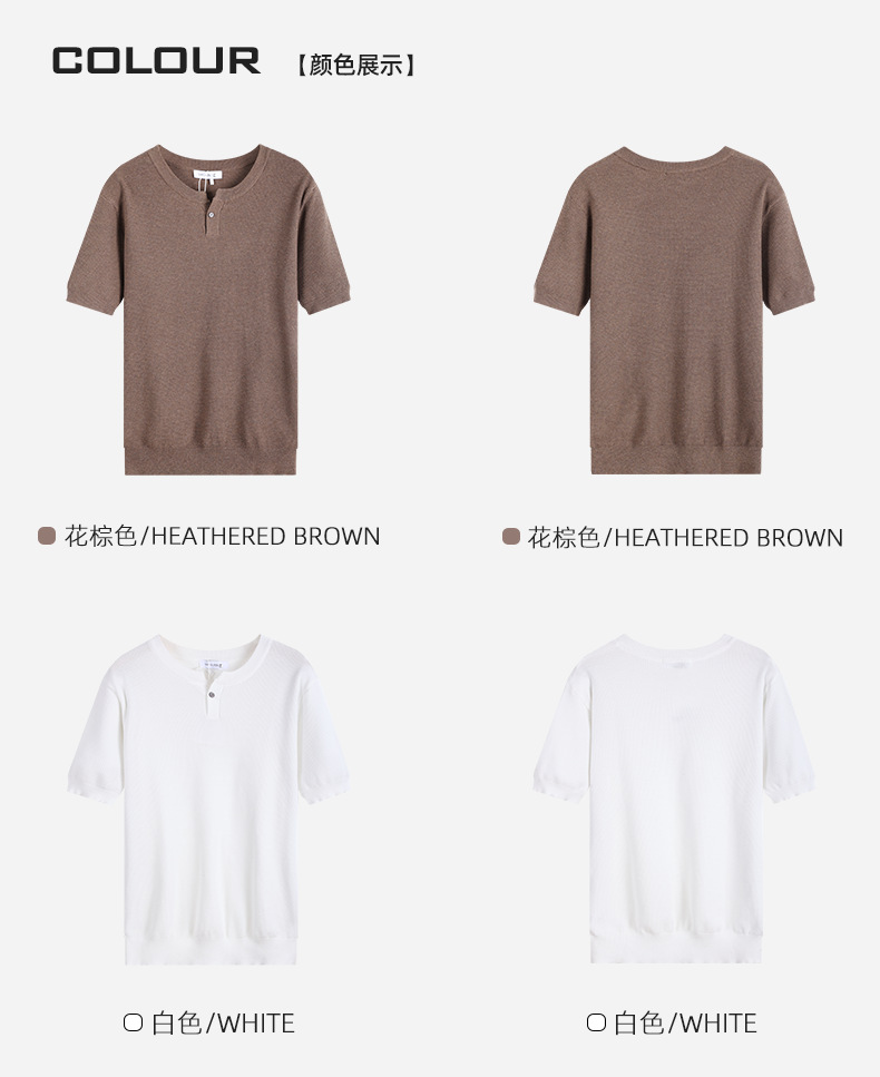 헨리 칼라 니트 아이스 실크 반팔 남성용 트렌디 하이 엔드 센스 티셔츠베이스 셔츠 라이트 럭셔리 남성복 티셔츠 남성용
