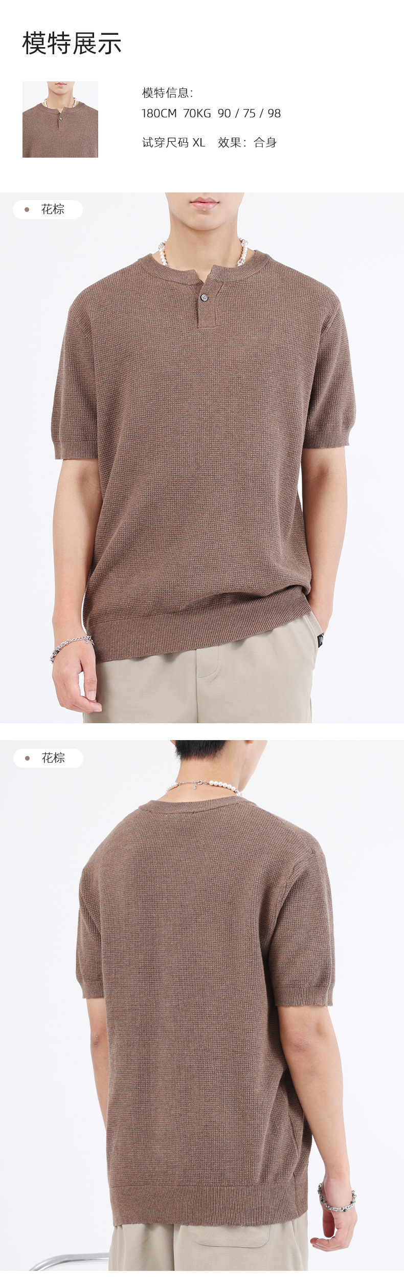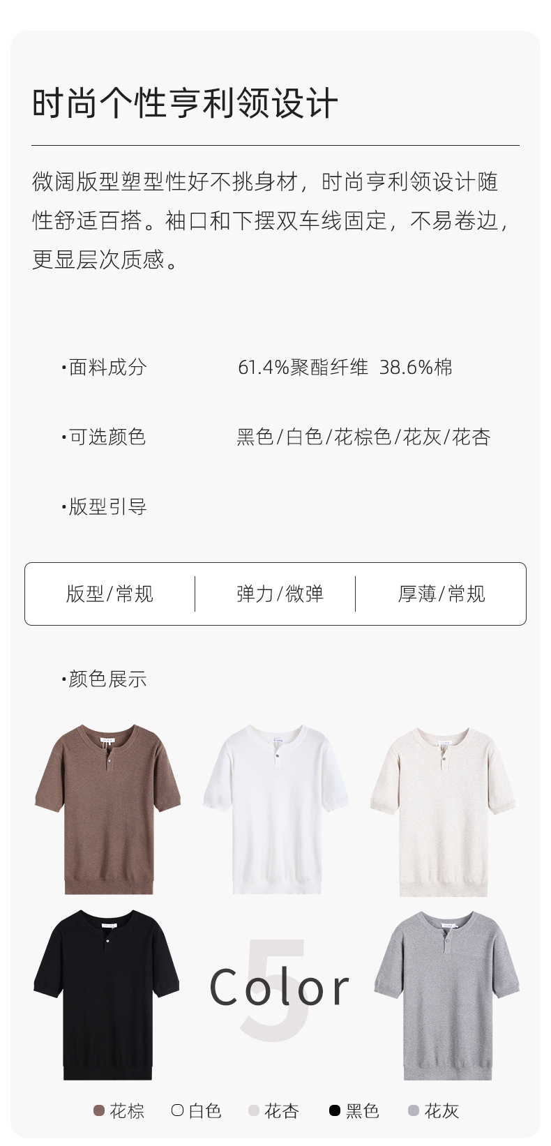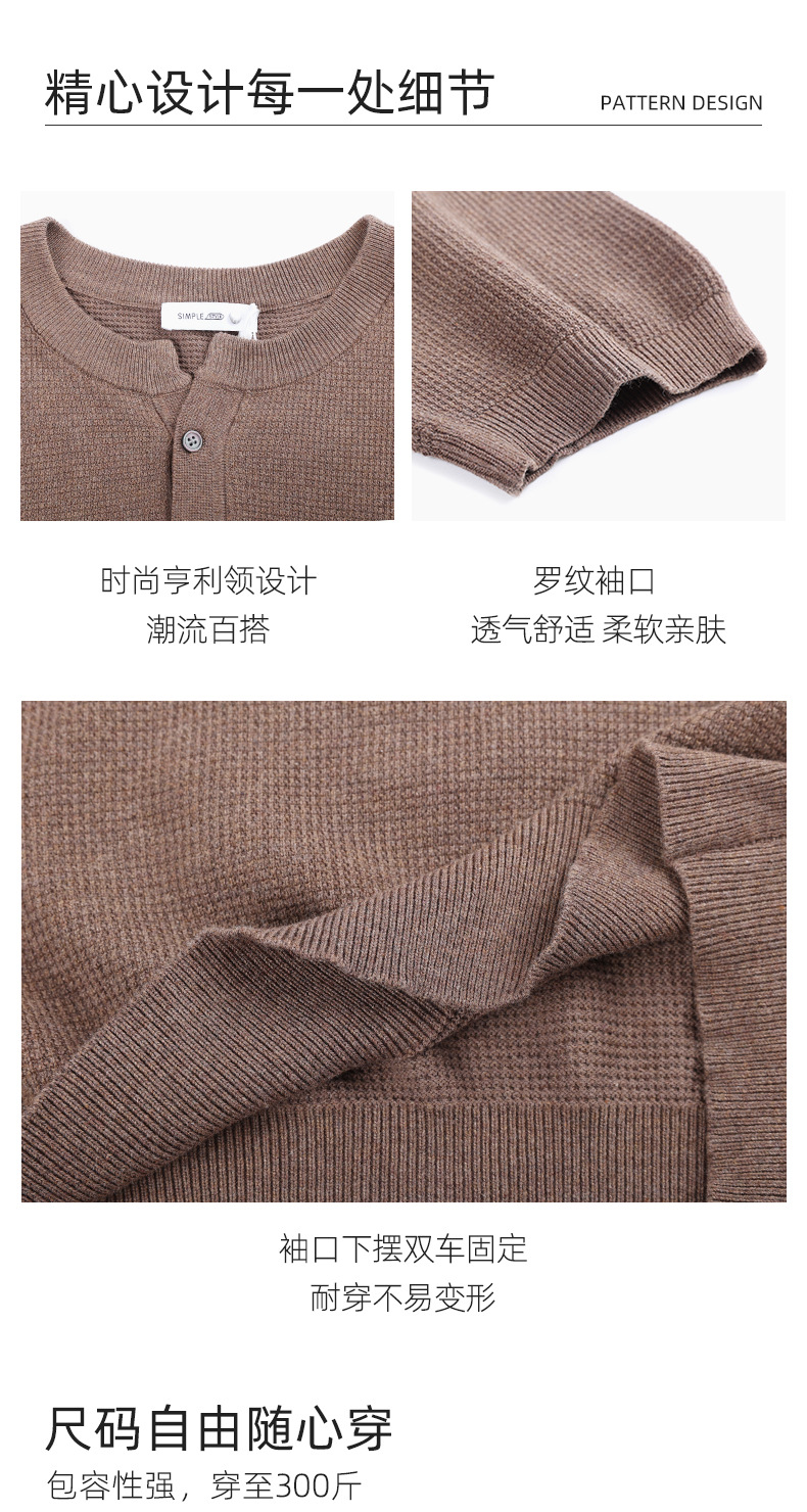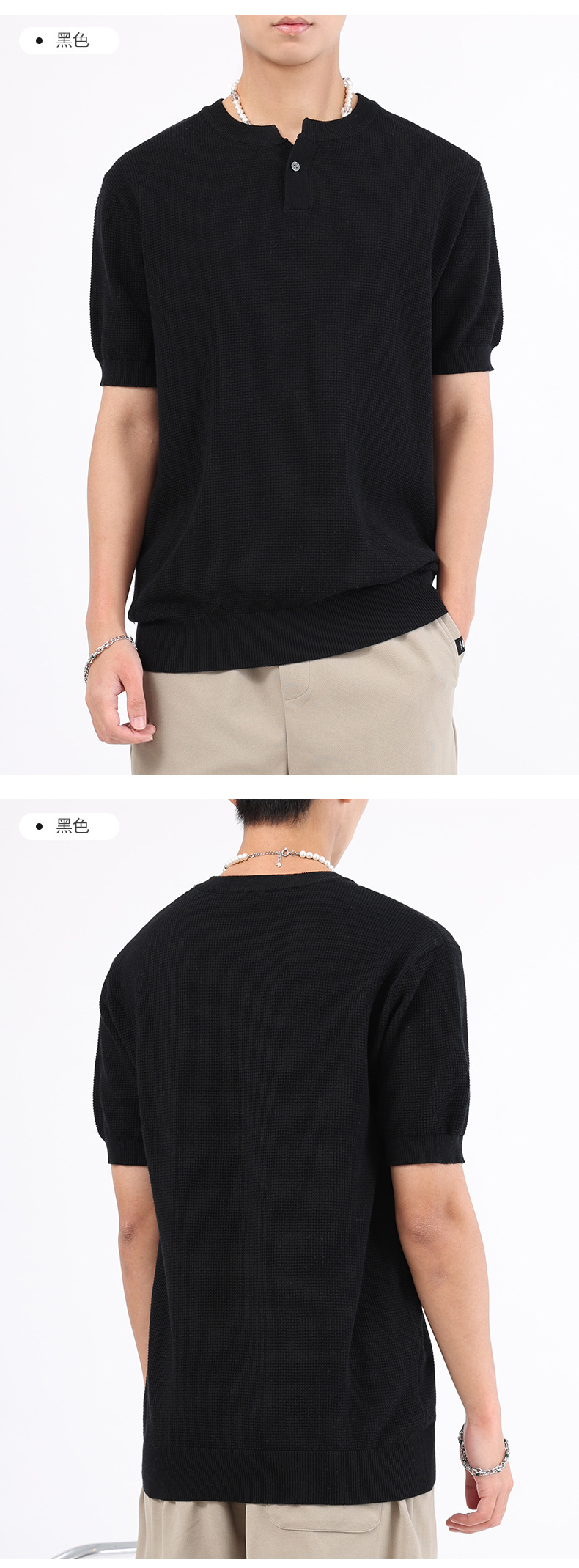 헨리 칼라 니트 아이스 실크 반팔 남성용 트렌디 하이 엔드 센스 티셔츠베이스 셔츠 라이트 럭셔리 남성복 티셔츠 남성용