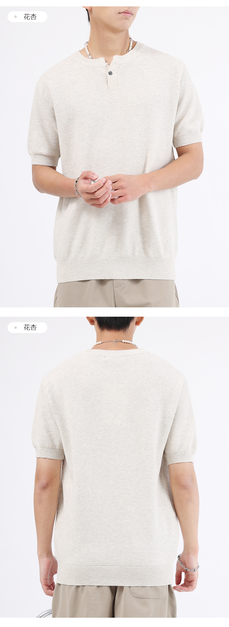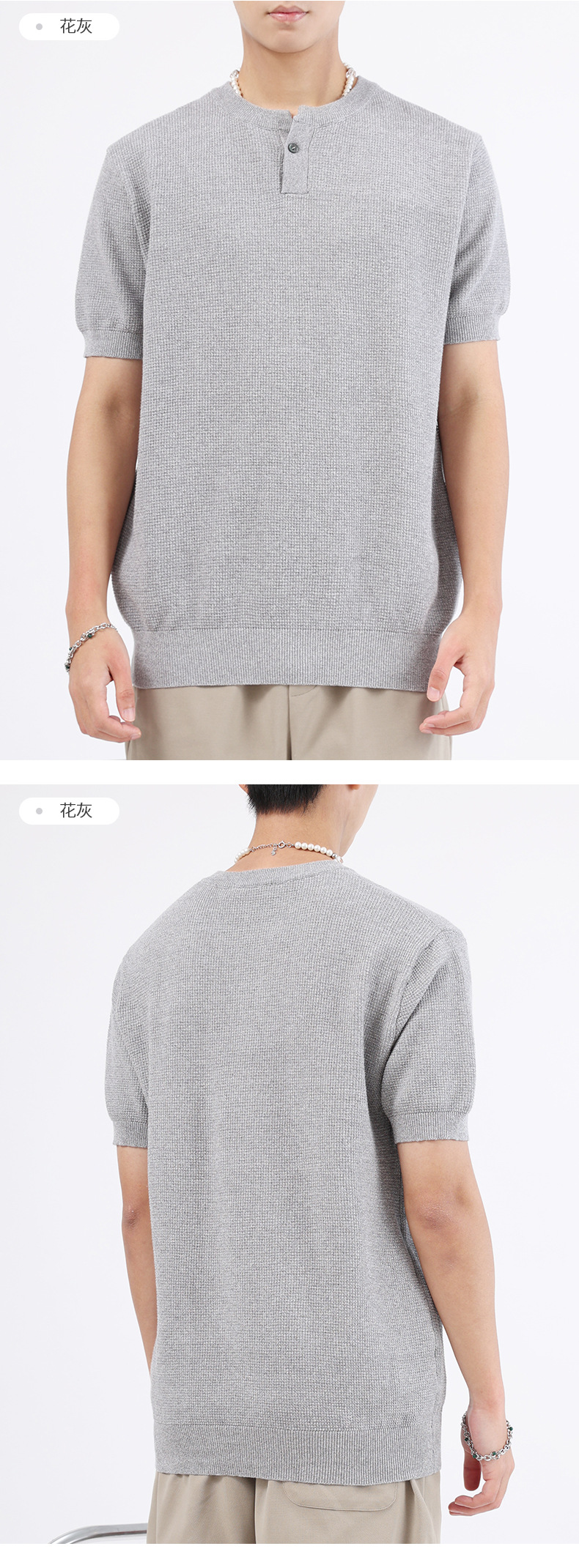 헨리 칼라 니트 아이스 실크 반팔 남성용 트렌디 하이 엔드 센스 티셔츠베이스 셔츠 라이트 럭셔리 남성복 티셔츠 남성용스토어 가기