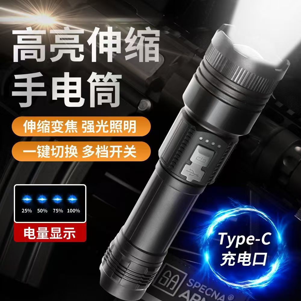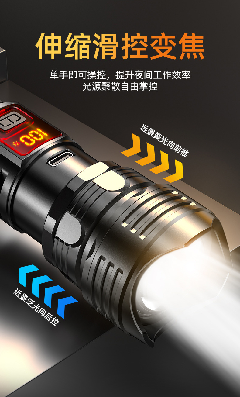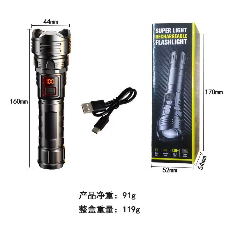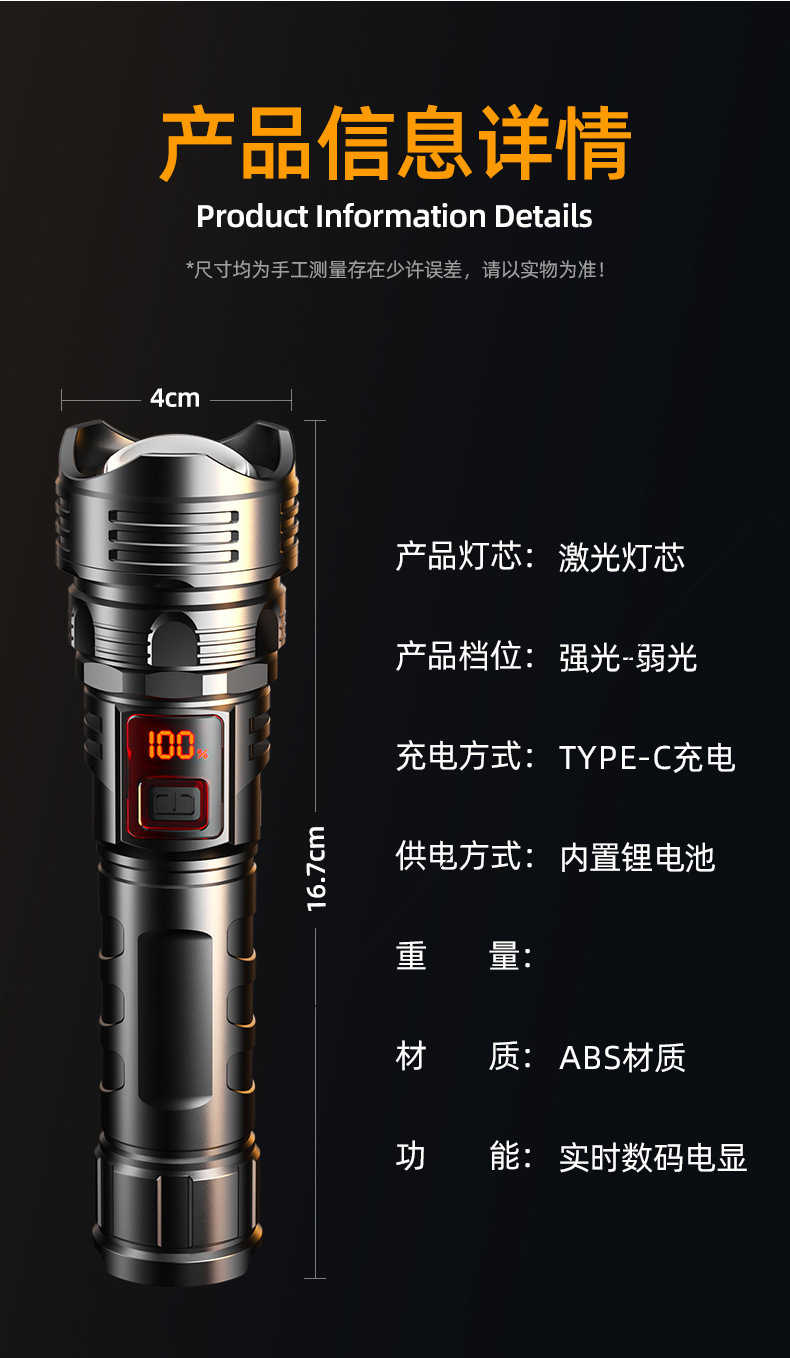 국경 간 고출력 장거리 백색 레이저 손전등 다기능 전기 디스플레이 충전식 줌 야외 순찰 서치라이트