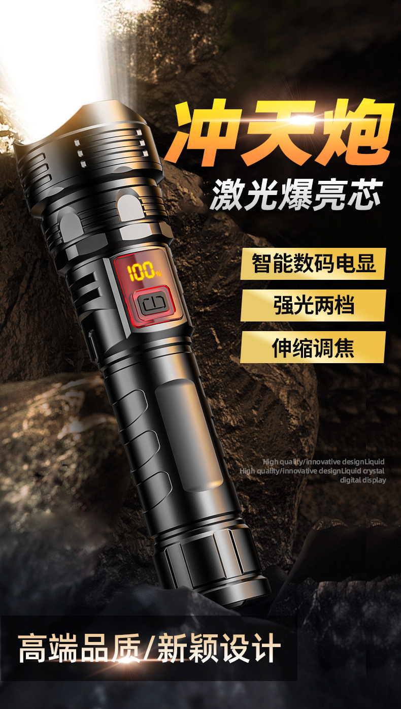 국경 간 고출력 장거리 백색 레이저 손전등 다기능 전기 디스플레이 충전식 줌 야외 순찰 서치라이트스토어 가기