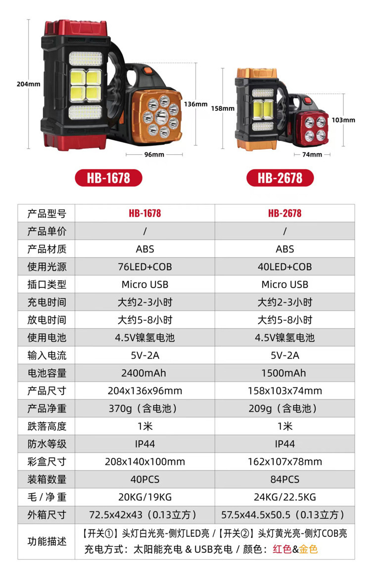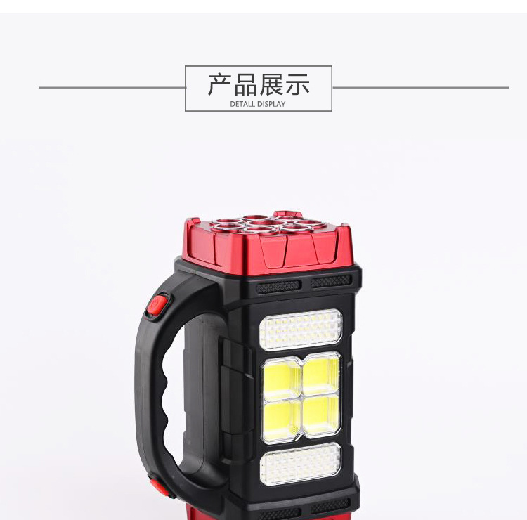 국경 간 태양 손전등 강한 빛 충전 긴 내구성 다기능 작업 빛 야외 비상 휴대용 서치 등
