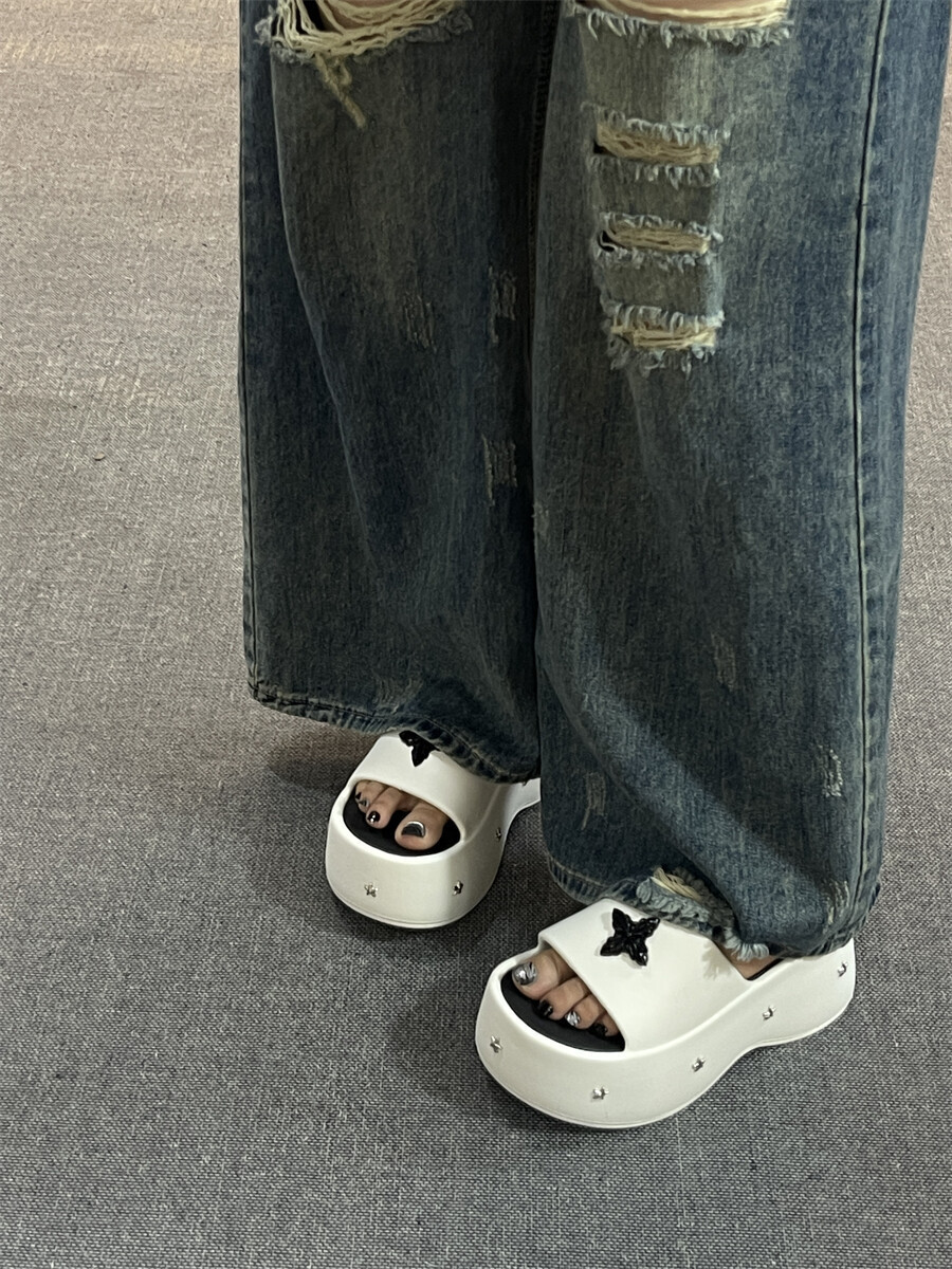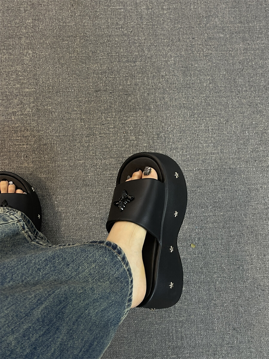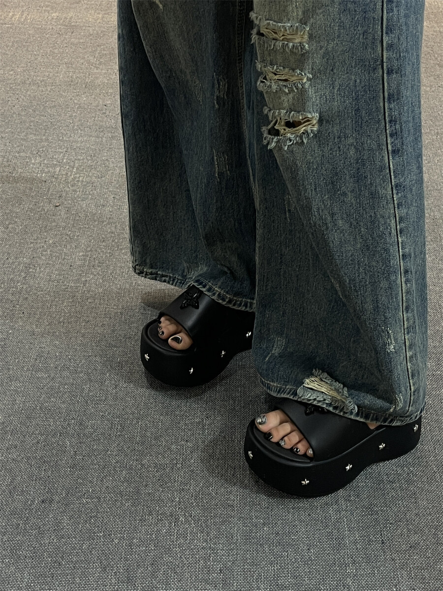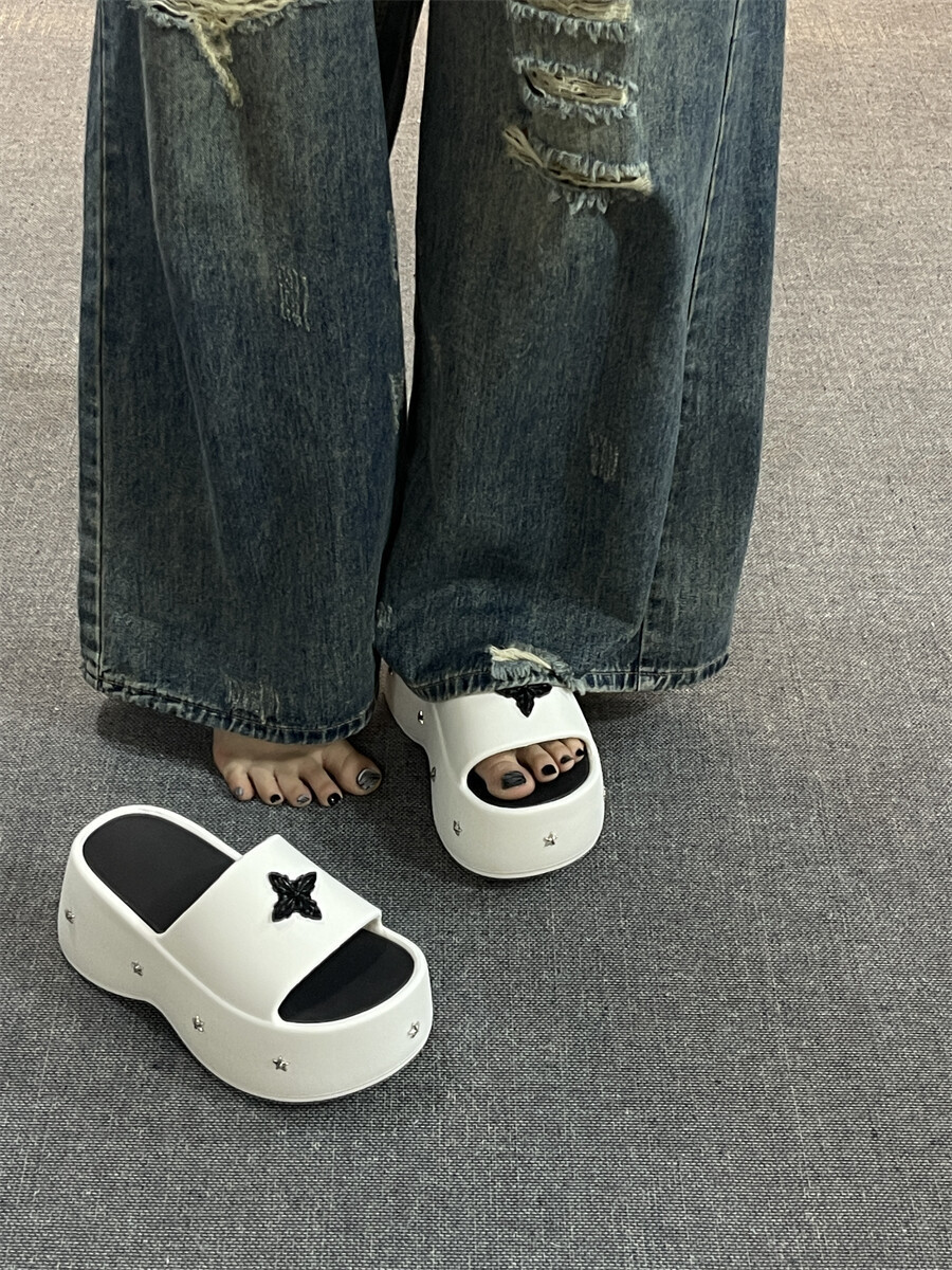 2025 새로운 펑크 스타일 두꺼운 슬리퍼 여성의 새로운 여름 아우터 캐주얼 패션 올매치 높이 증가 여성 슬리퍼스토어 가기