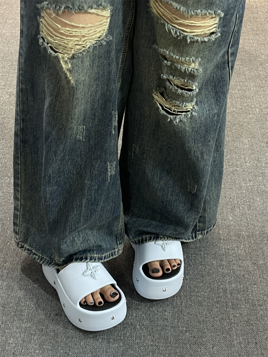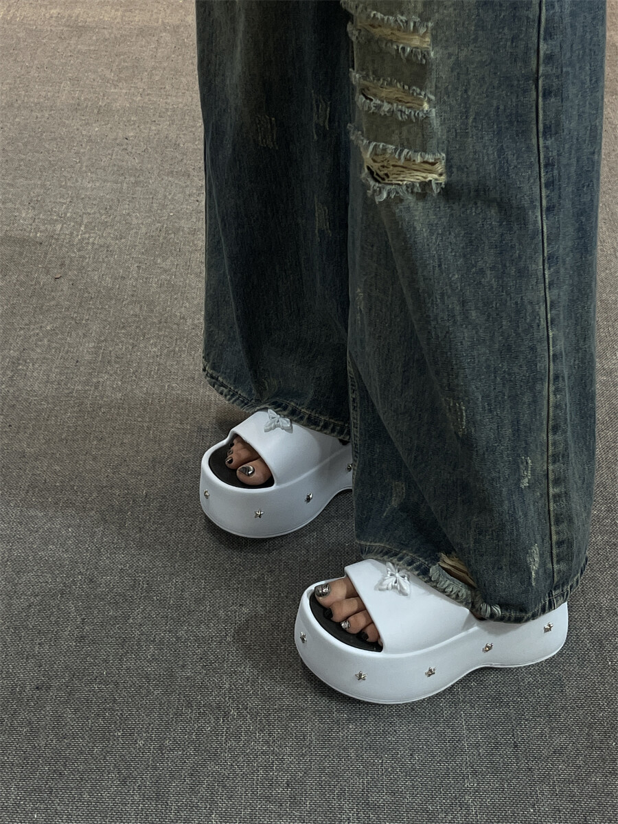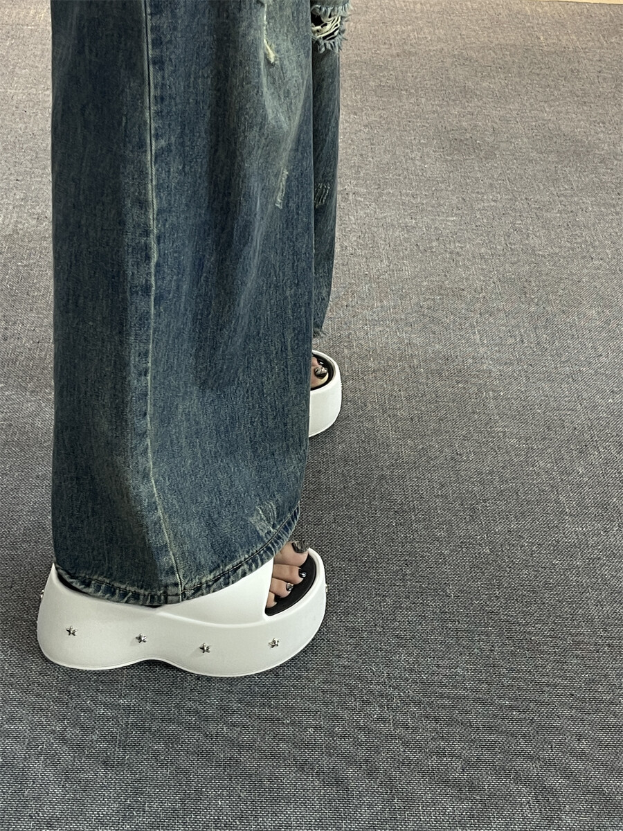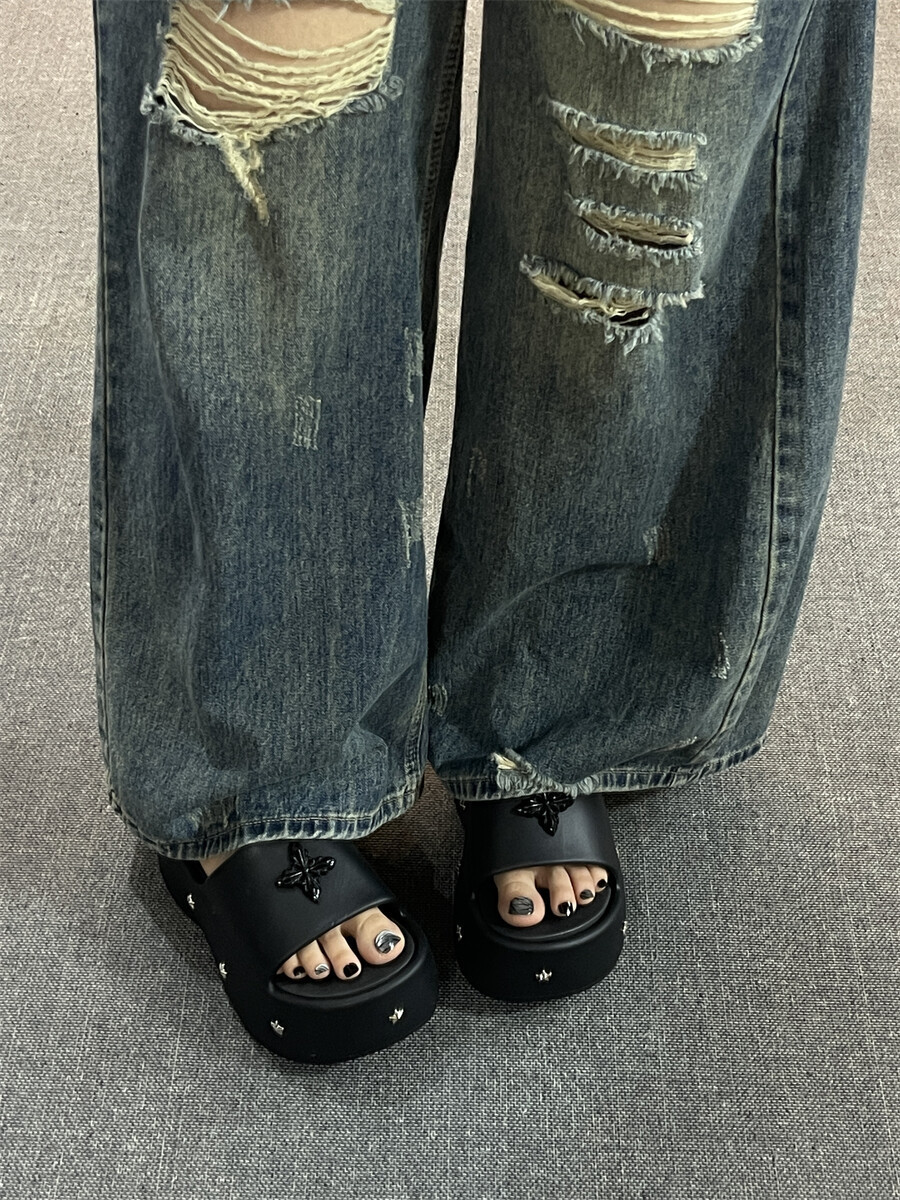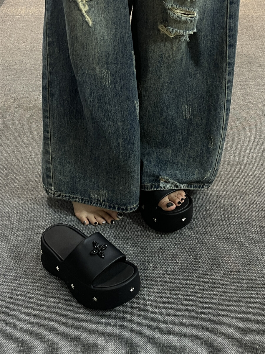 2025 새로운 펑크 스타일 두꺼운 슬리퍼 여성의 새로운 여름 아우터 캐주얼 패션 올매치 높이 증가 여성 슬리퍼스토어 가기
